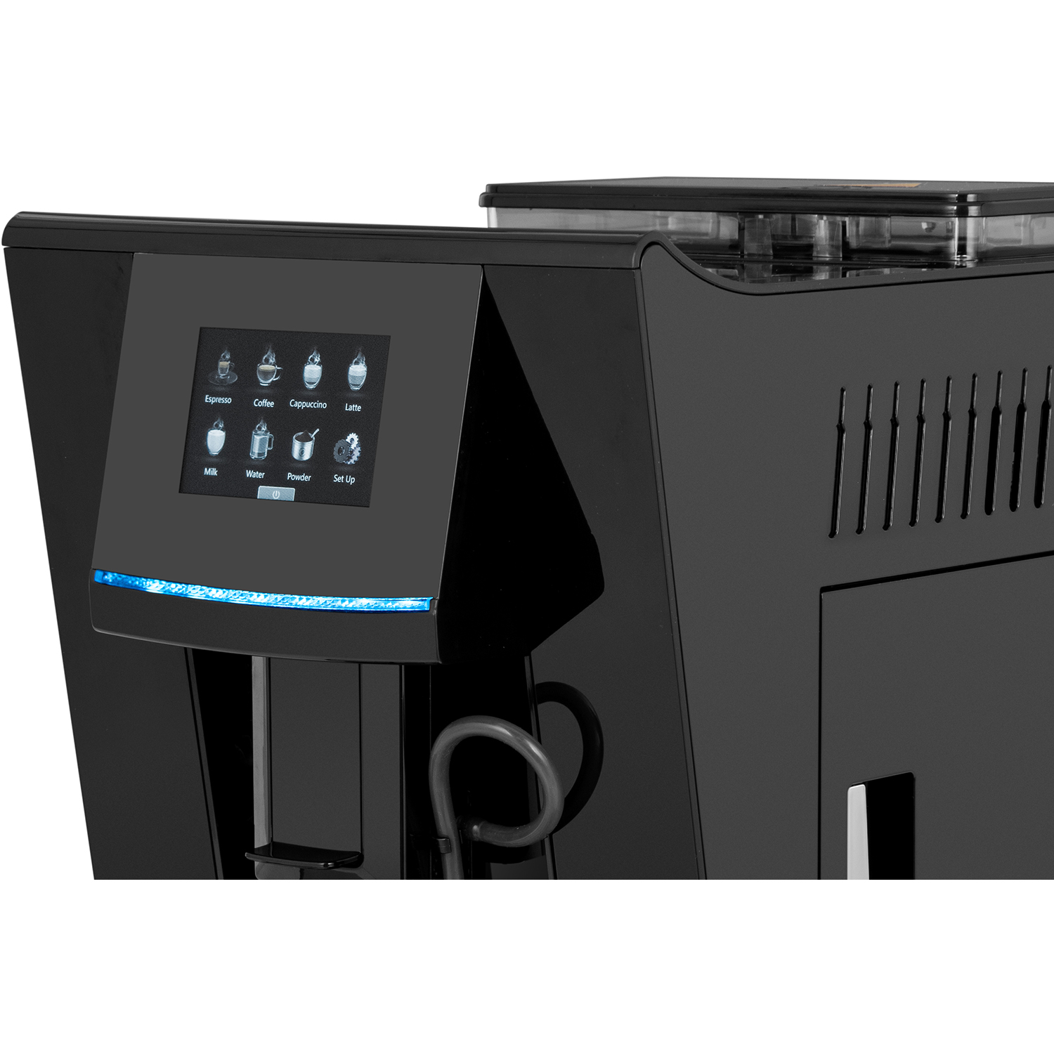 - One Touch Cappuccino, Latte, Espresso, Coffee, Hot Milk, and Hot Water Functions.