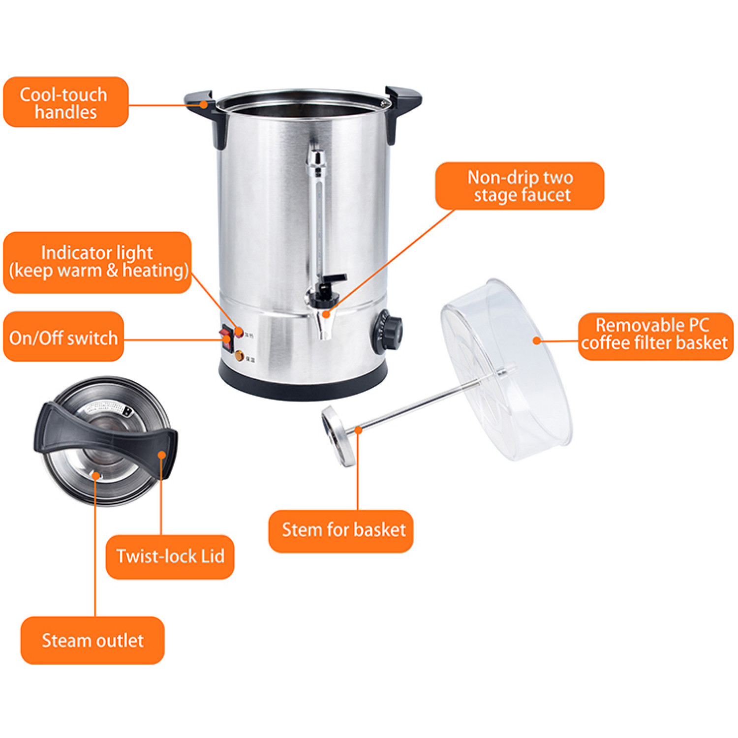 25 litre commercial coffee urn designed for catering customers that need easy access to coffee, whether you are using it for social gatherings, business meetings, club, group function or waiting areas, this urn will definitely meet your expectations.