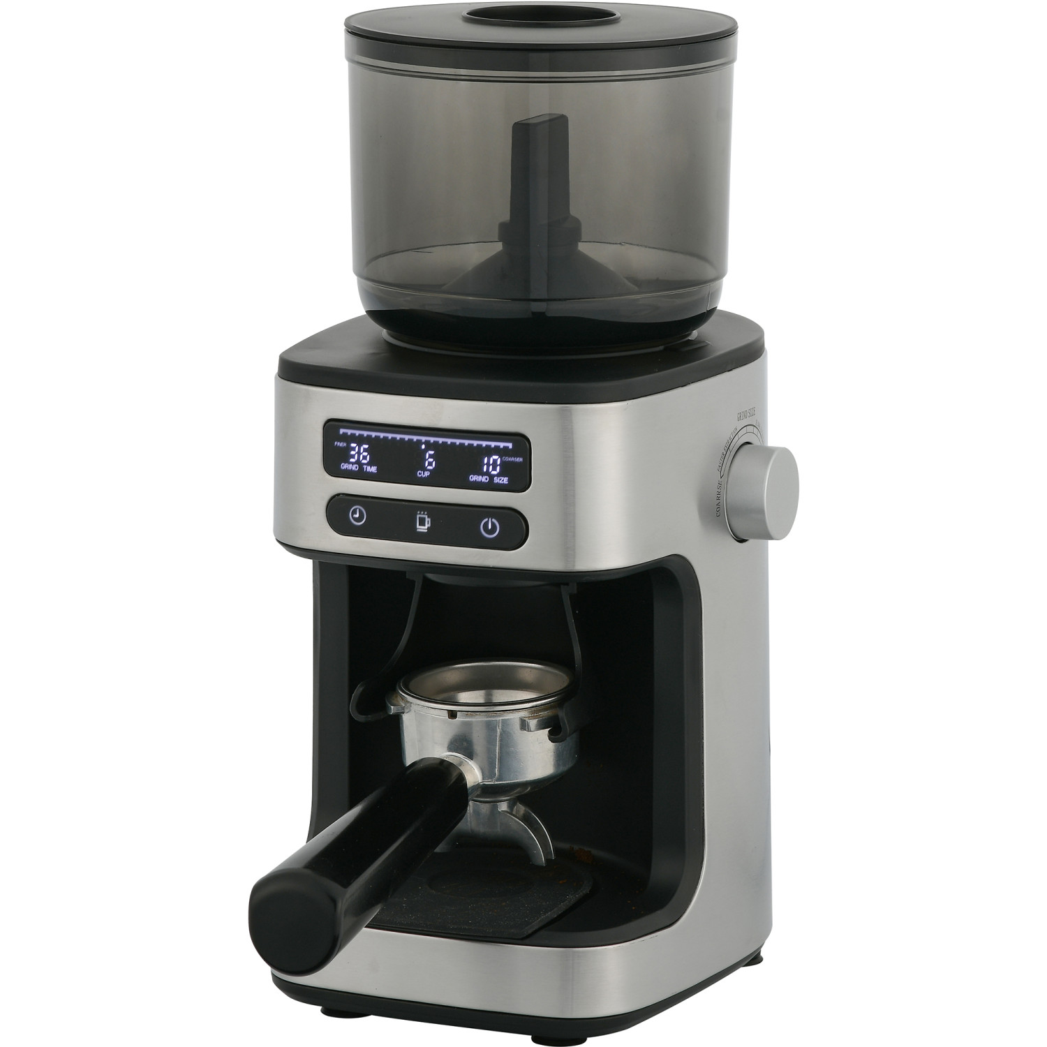 Brew an amazing cup of coffee every time with this 200-240W Coffee Grinder. With 60 precisely calibrated grind settings from espresso to French press, you can enjoy a perfectly balanced cup of coffee every single time. The conical burr design helps reduce grinding heat to preserve the flavor of your freshly ground beans. The stainless steel design is durable and easy to clean, and the 130g powder cup and two portfilter cradles (50-54mm and 58mm) provide all you need for a great cup of coffee. Also fetauring a precision timer with 0.2 second increments to provide you with the best results every time. Get the perfect grind with this amazing Coffee Grinder.