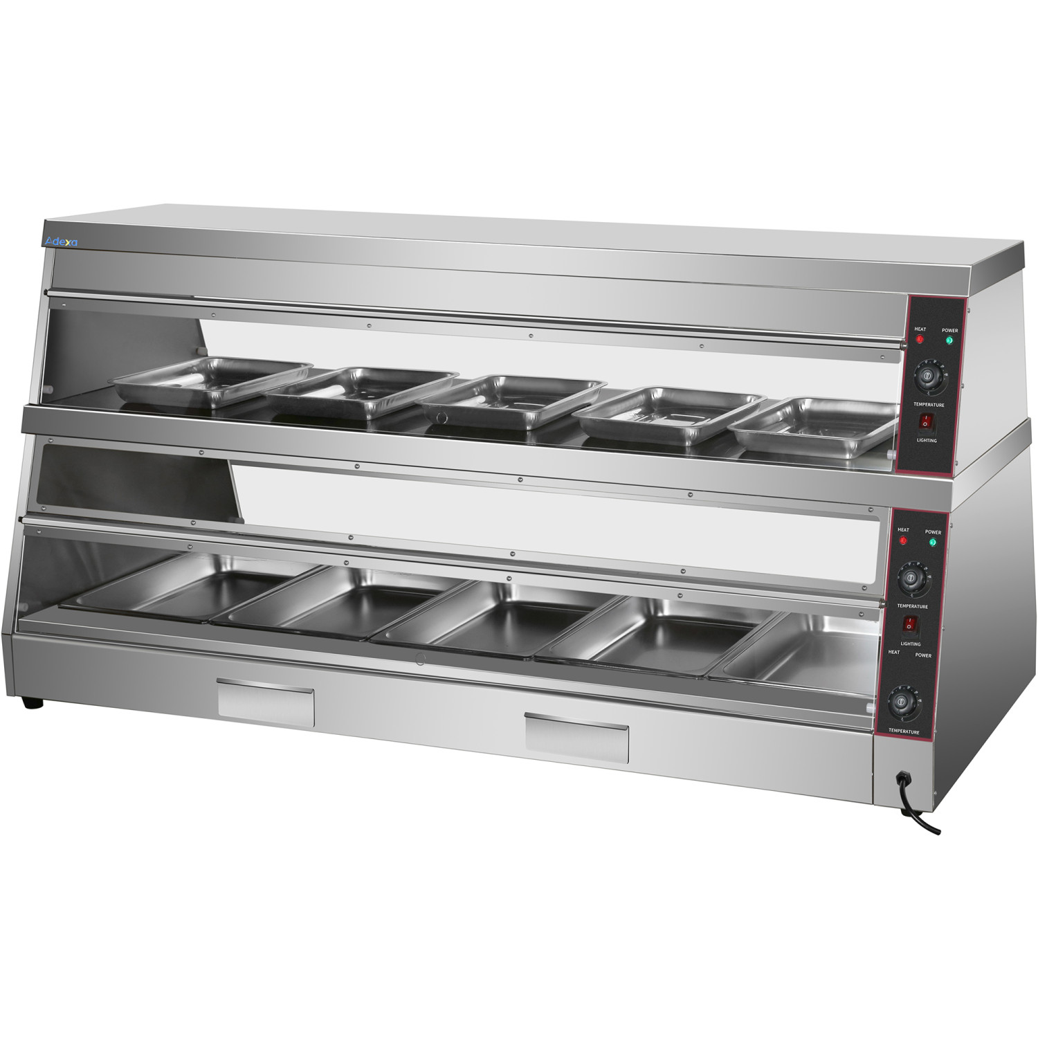 Commercial Two-Tier Heated Showcase Food and Chicken Warmer 1800x760x860mm Countertop Dry Heat and Wet Heat - CEHW6PA