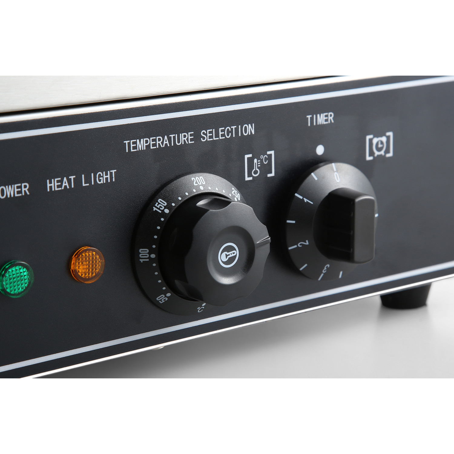 Elevate your corn dog experience to new heights by crafting your own signature batter using our traditional waffle maker. This versatile appliance allows you to effortlessly create six delectable ribbed corn dogs in no time. Thanks to the ingenious notch in the tray, you can effortlessly secure a stick for that classic corn dog presentation. Crafted for rigorous daily use, this premium waffle iron is a perfect fit for quaint bakeries, cozy cafes, and bustling restaurants. The aluminum tray boasts a non-stick coating to ensure your corn dogs come out flawless and separate. With this generously-sized waffle maker, you can whip up a batch of six in a single go.