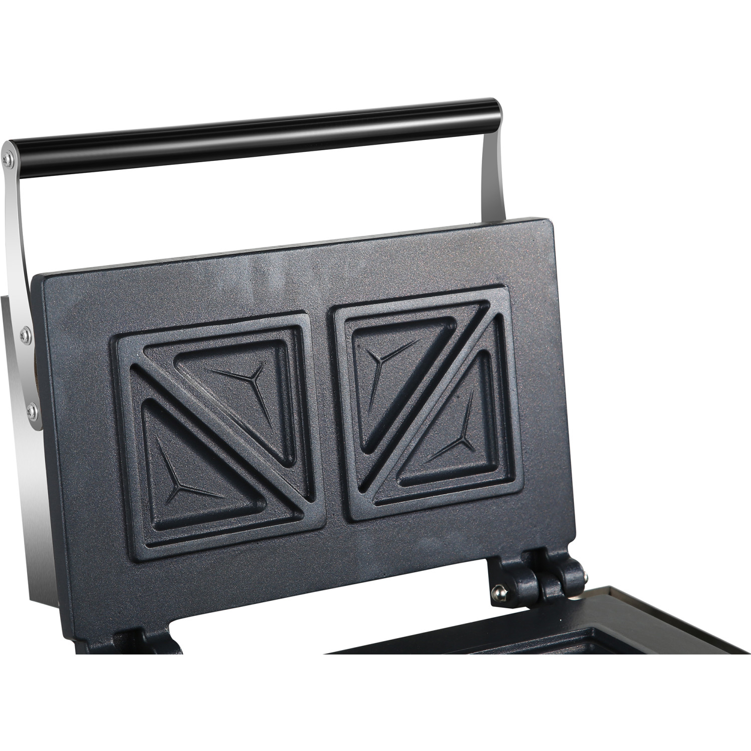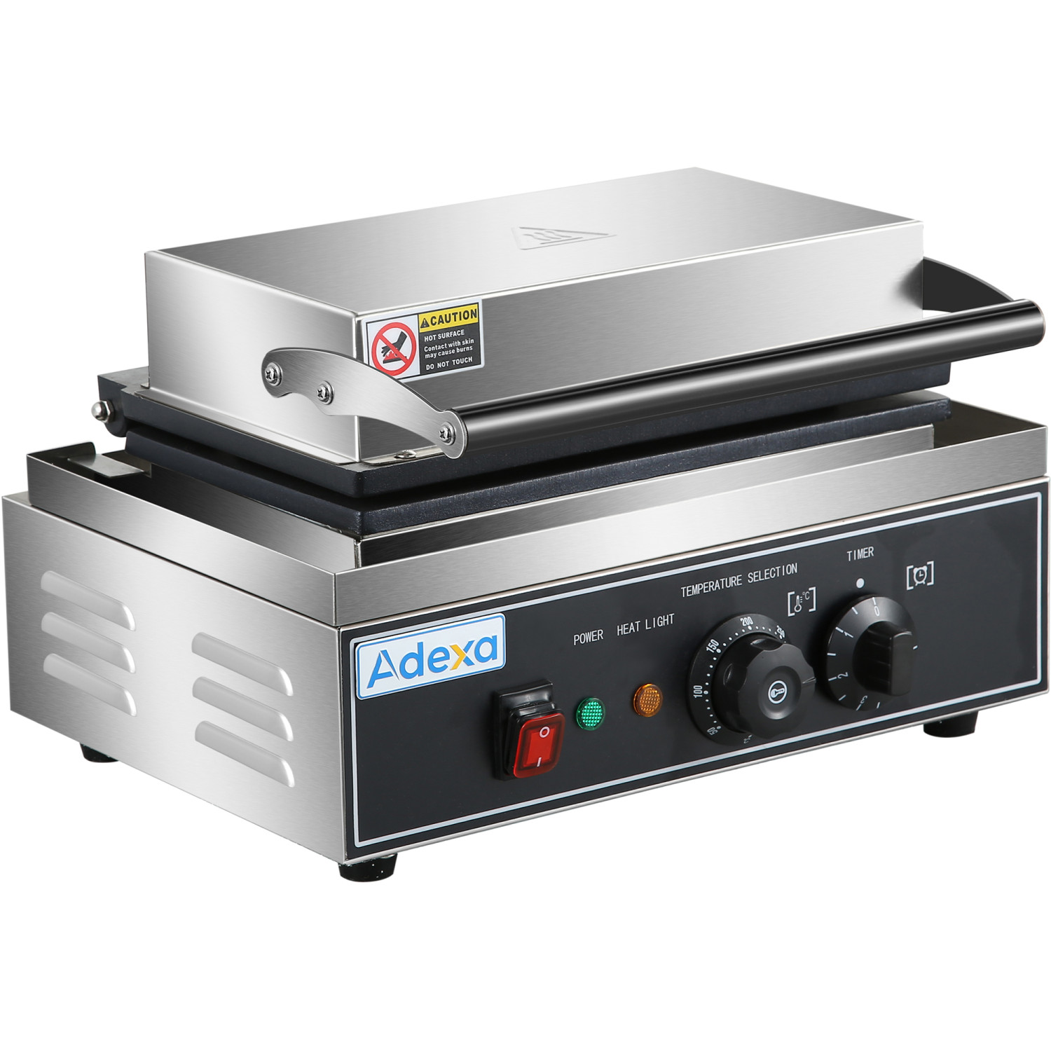 Grill your most popular sandwiches to perfection with this contact sandwich grill! This grill features cast iron plates to evenly cook sandwiches. The thermostatic controls let you adjust temperatures so you can cook at the perfect temperature, while the stainless steel exterior frame ensures long-lasting durability.