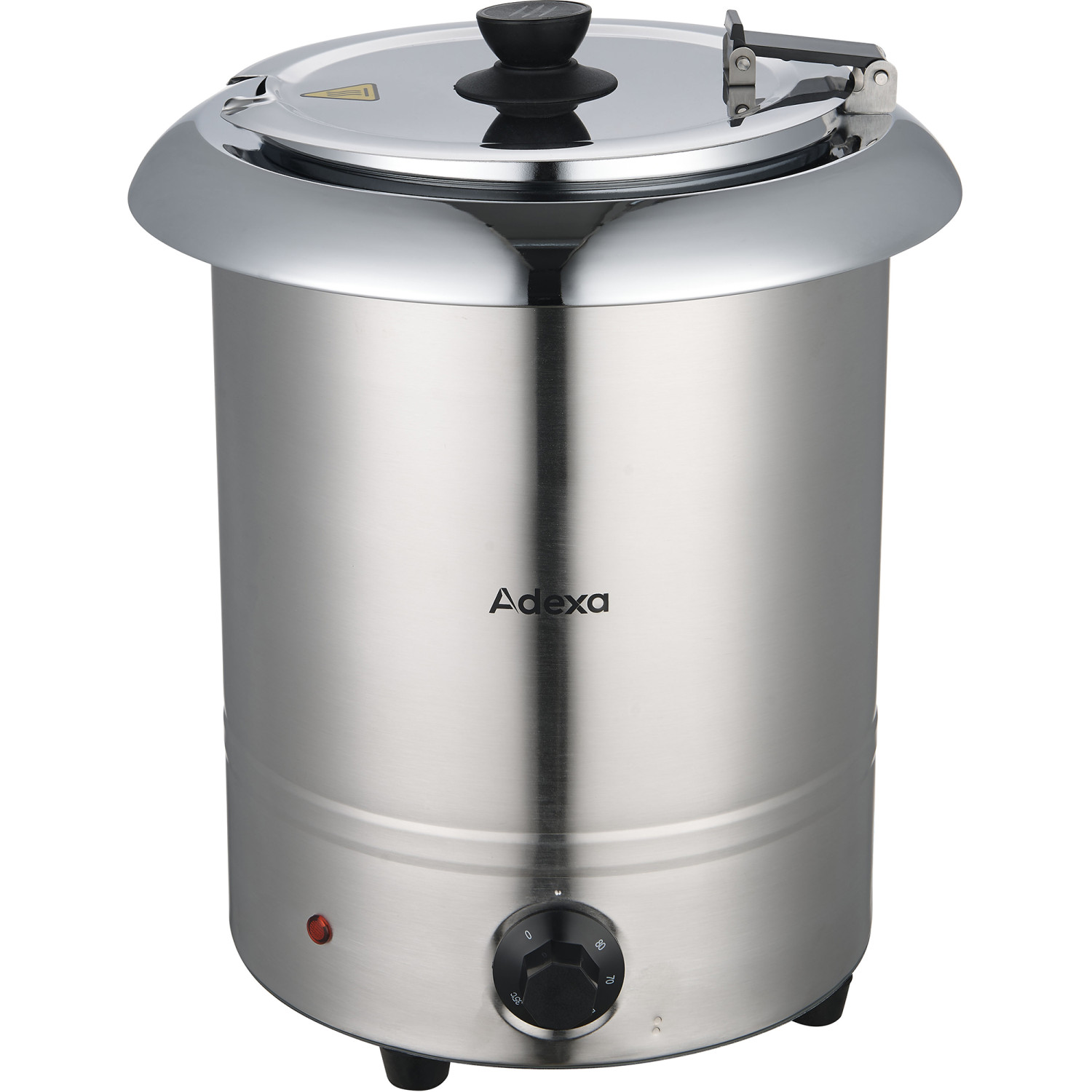 Commercial soup kettle with a 10 litre holding capacity, this Soup Kettle is ideal for preparing and serving piping-hot soups to your customers. This professional soup heater will keep soup at the ideal serving temperature. Perfect for cafeterias, diners, and self serve kiosks. Includes stainless steel insert.