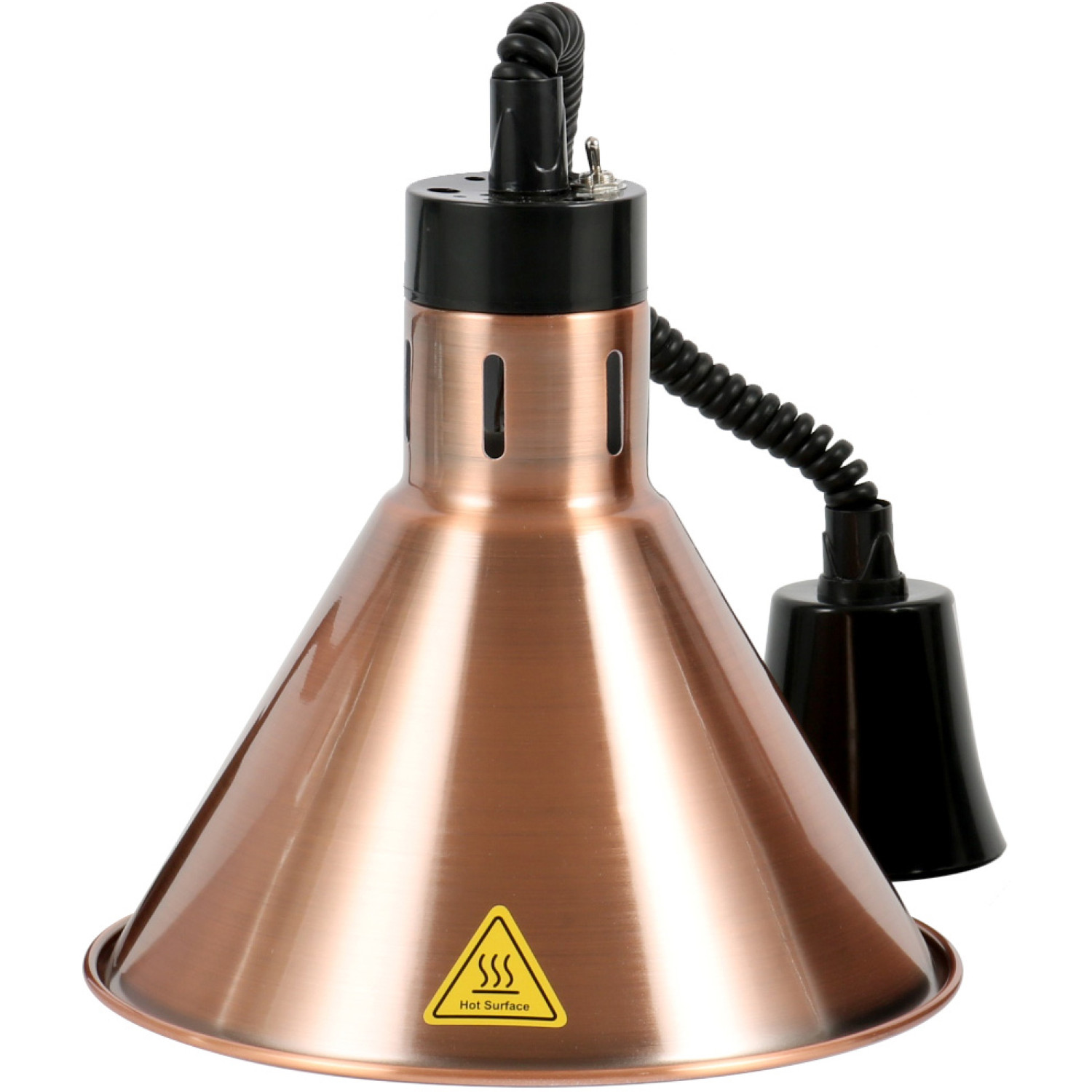 This ceiling mounted commercial heating lamp with retractable cord in silver is a reliable and stylish solution for hot holding food. Ideally suited for use on the pass or in self-service buffet areas, the lamp can easily be adjusted so that food is kept appealing and at the perfect serving temperature.