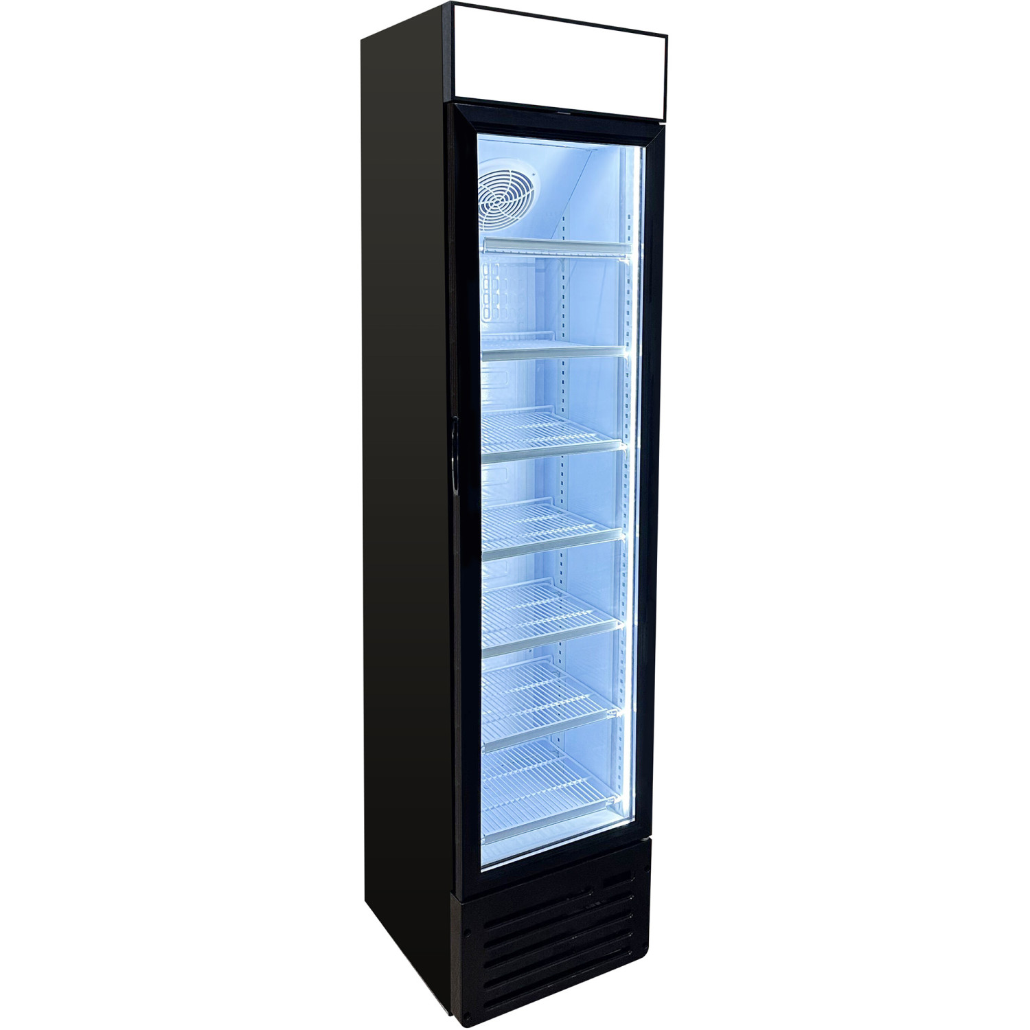 this upright bottle cooler is perfect for creating eye catching displays in any