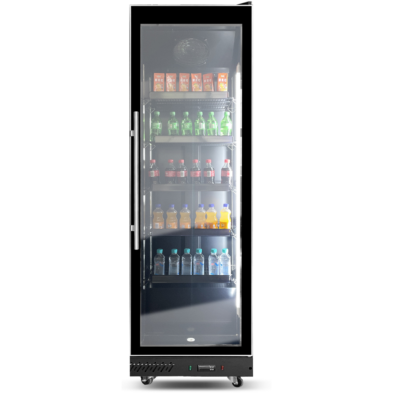 Commercial Bottle Cooler Upright 400 litres Single Glass Door with LED Canopy in Black - CEKXG400H