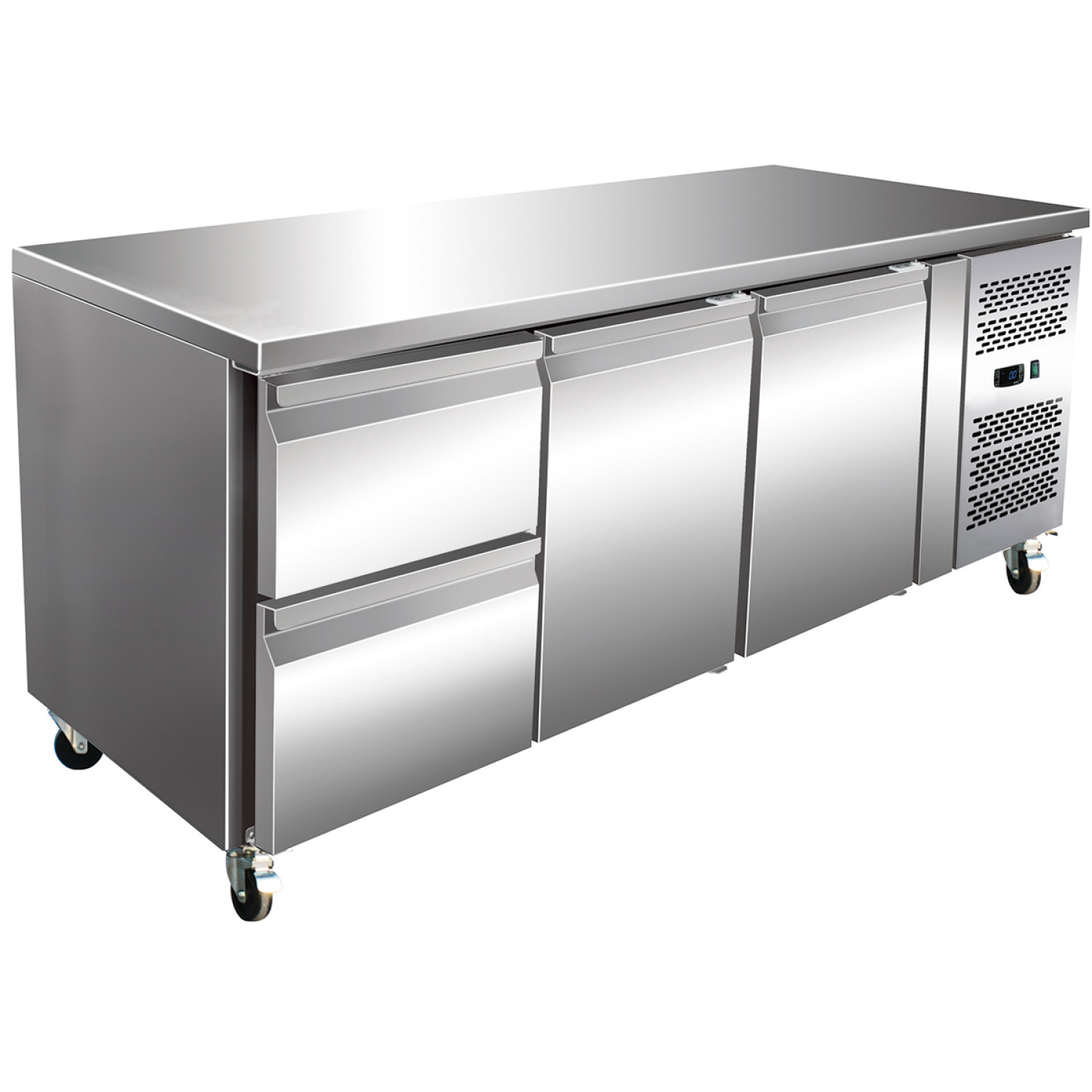 Counter chiller with three stainless steel solid doors and 4 castors included. This bench fridge also comes with a range of useful features which are certain to make life in your catering & professional restaurant kitchen considerably simpler.