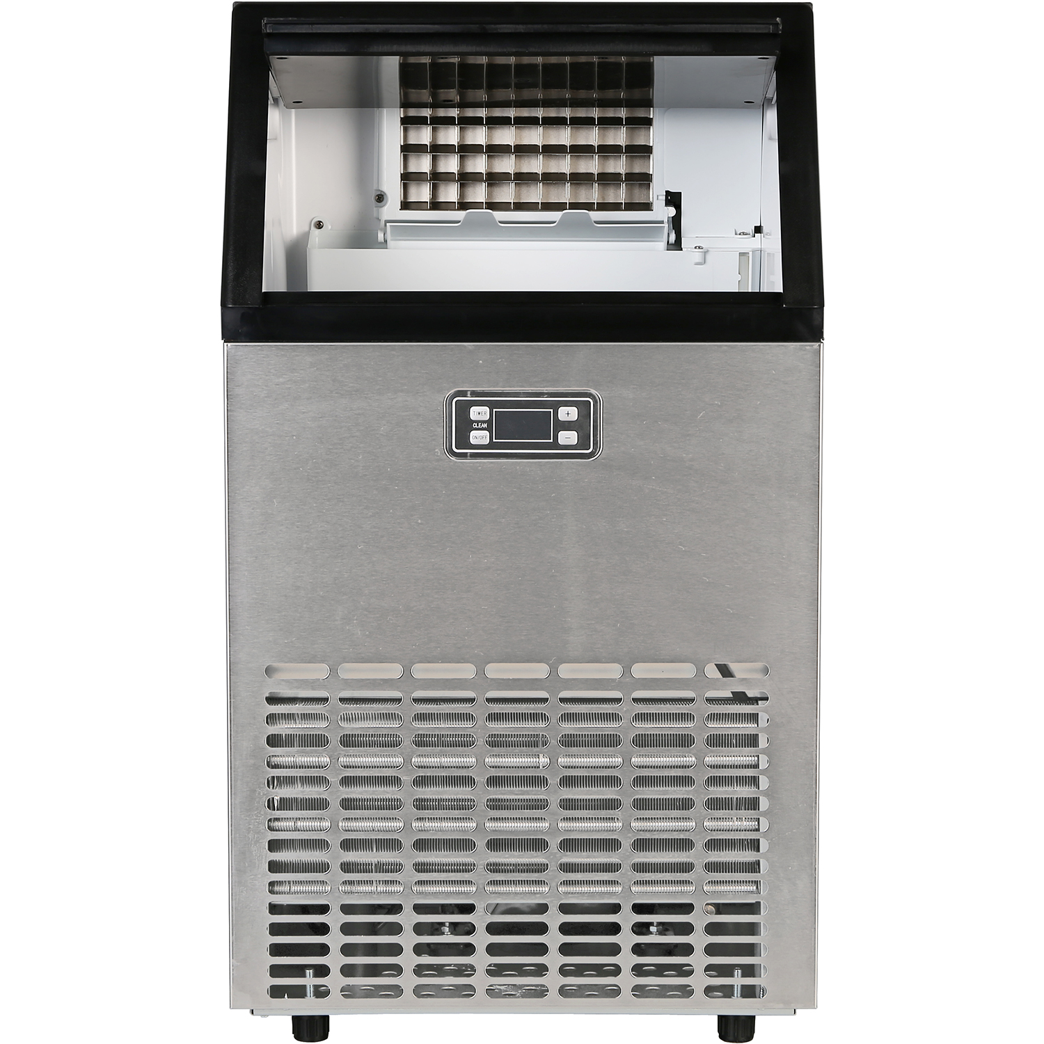 - This high-quality ice making machine is made of food-grade stainless steel, with a double-layer foam insulation layer. The one-button cleaning function makes it durable, sanitary and easy to clean. It is equipped with a digital LCD panel to make reservations. An automatic protection system is included, ensuring safety during operation. Perfect for coffee shops, hotels, bars, bakeries, cold drink shops, and other food industries.
