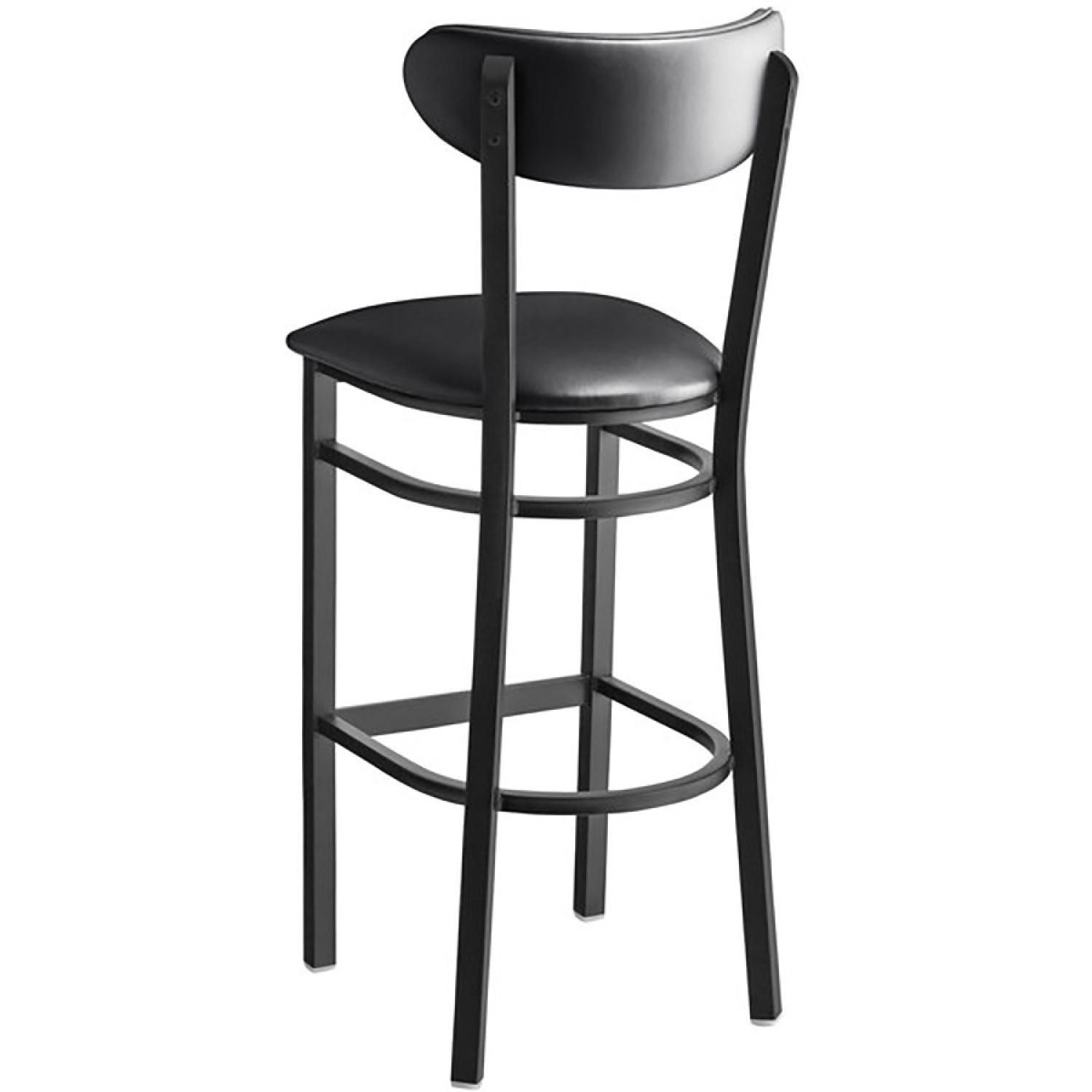 This barstool has a contemporary steel frame along with a comfortable, black vinyl seat and backrest. This stool is perfect for both bar and raised table seating and will provide unmatched comfort while maintaining a distinct appearance. Its reliable and modern design ensures you'll be using this barstool in your pub or restaurant for years to come. This barstool is the last one you'll ever need to buy!
