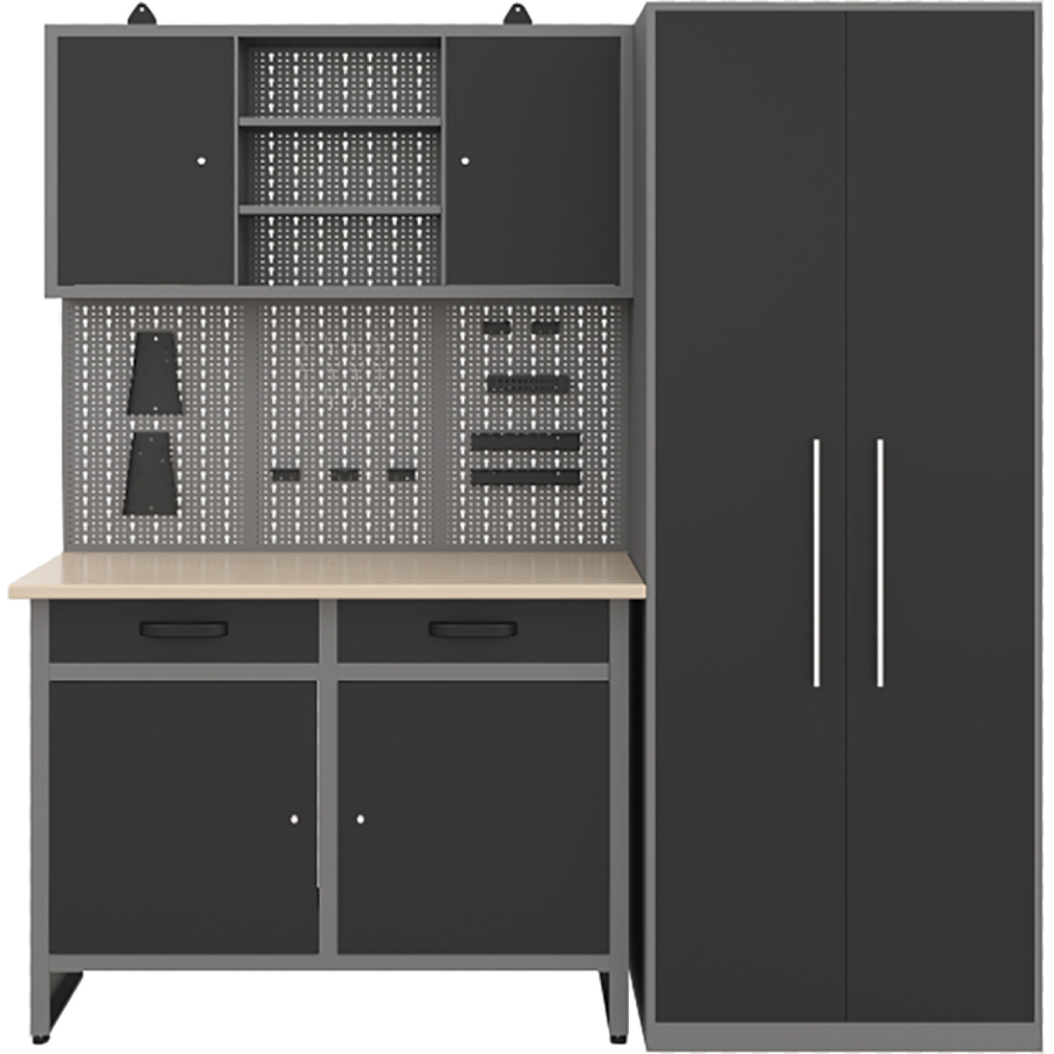 Garage Workstation Set - with Wooden Desktop, 5 Drawers, 2 Cupboards, and 1 Cabinet, 2100x600x2050 - CETC117