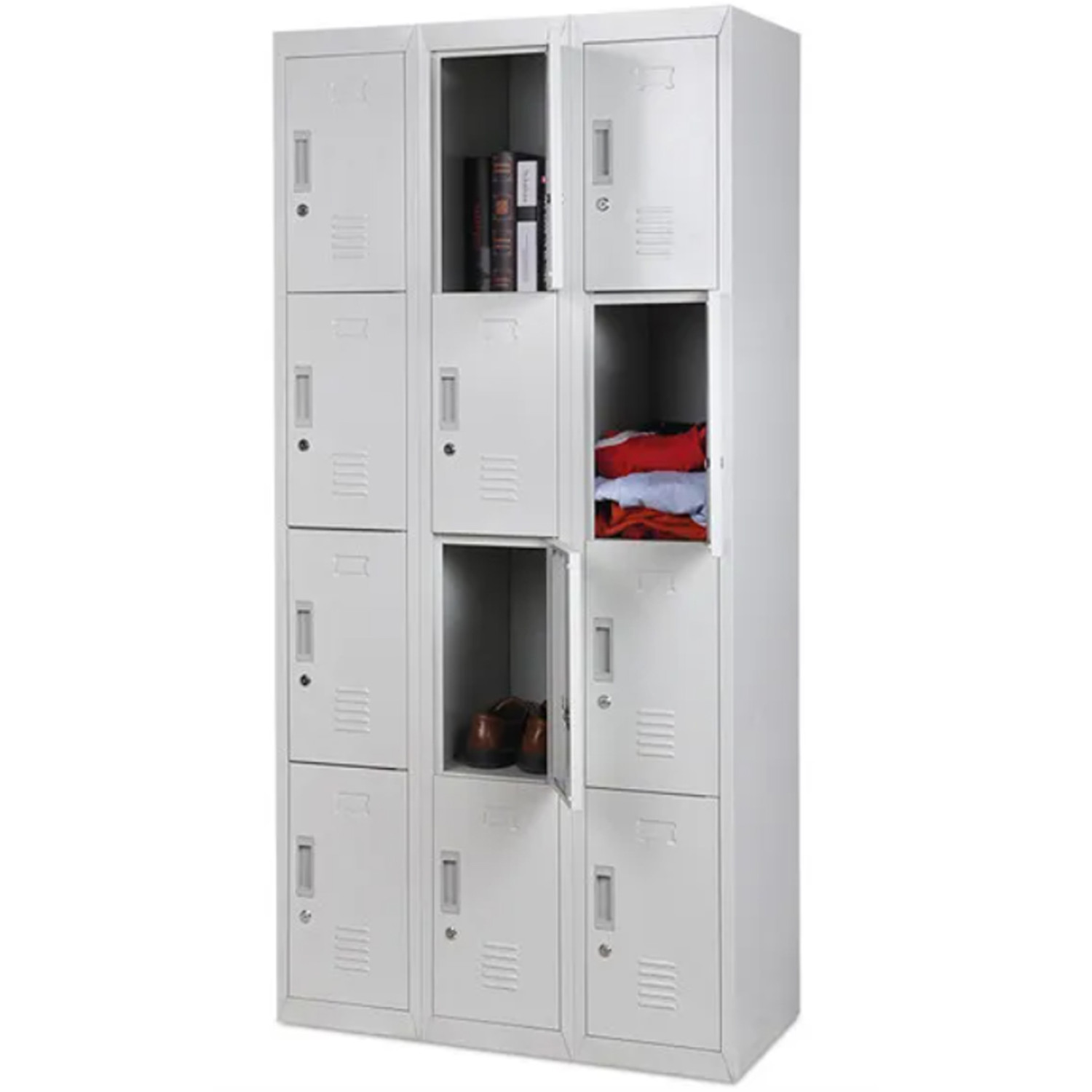 Ideal for company changing rooms and locker rooms, this locker features 12 separate compartments with doors, providing ample storage space for keeping clothes and other personal belongings safe.