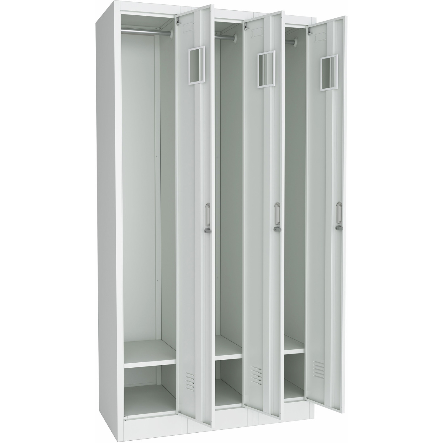 Commercial Grey Three Door Locker with Clothes Hanger, Fixed Shelf and Mirror 900x450x1800mm - CELOCKER3TW