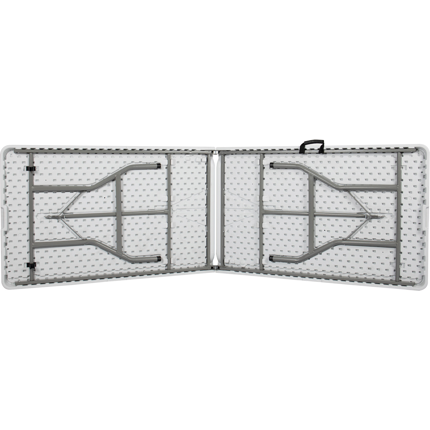 Set up comfortable seating indoors or outdoors with this fold-in-half picnic bench. The HDPE bench offers a durable space t, while the steel frame resists rusting for lasting strength. When you need to put the bench away, you can fold the legs flat and the bench in half and grab the carry handle to comfortably tote it away.