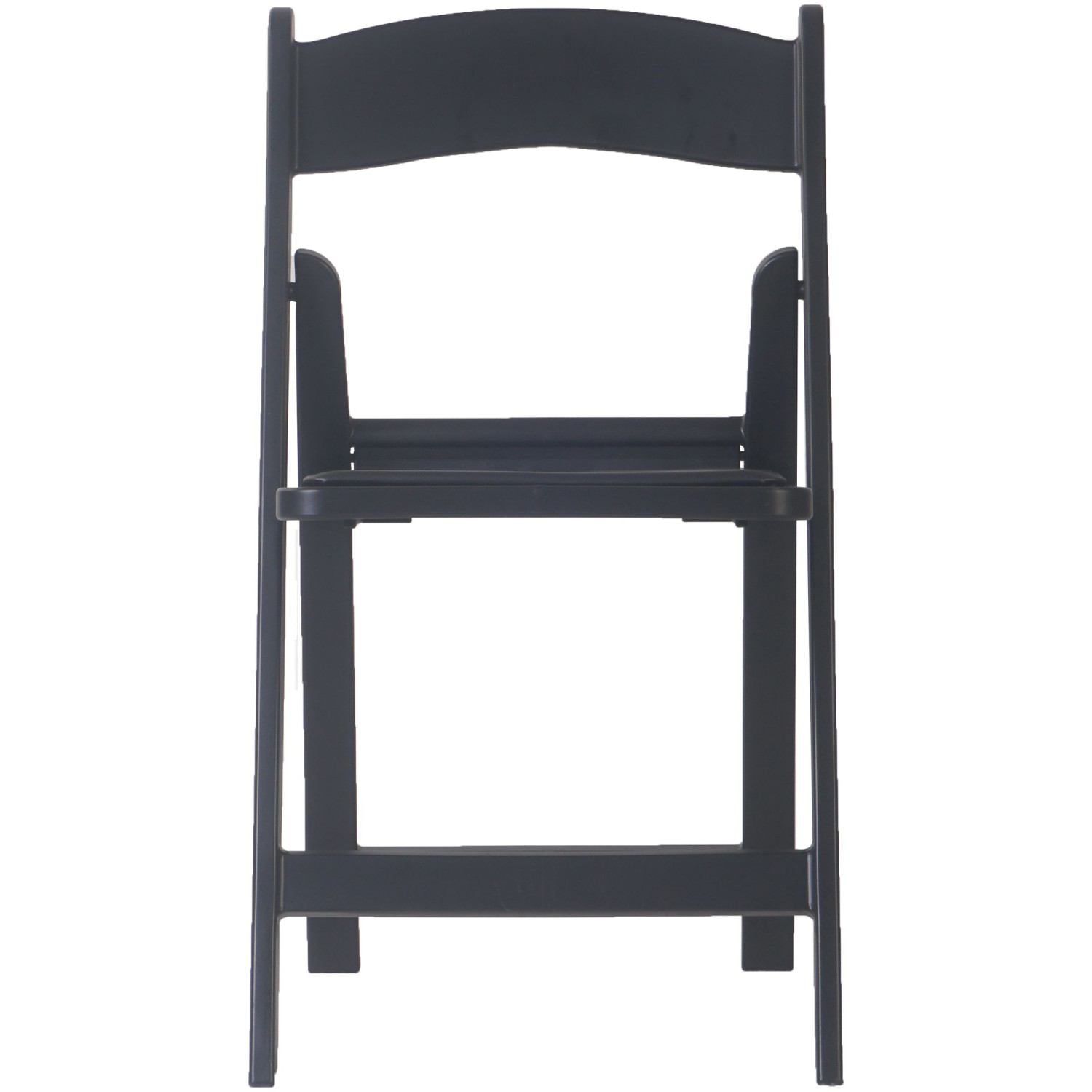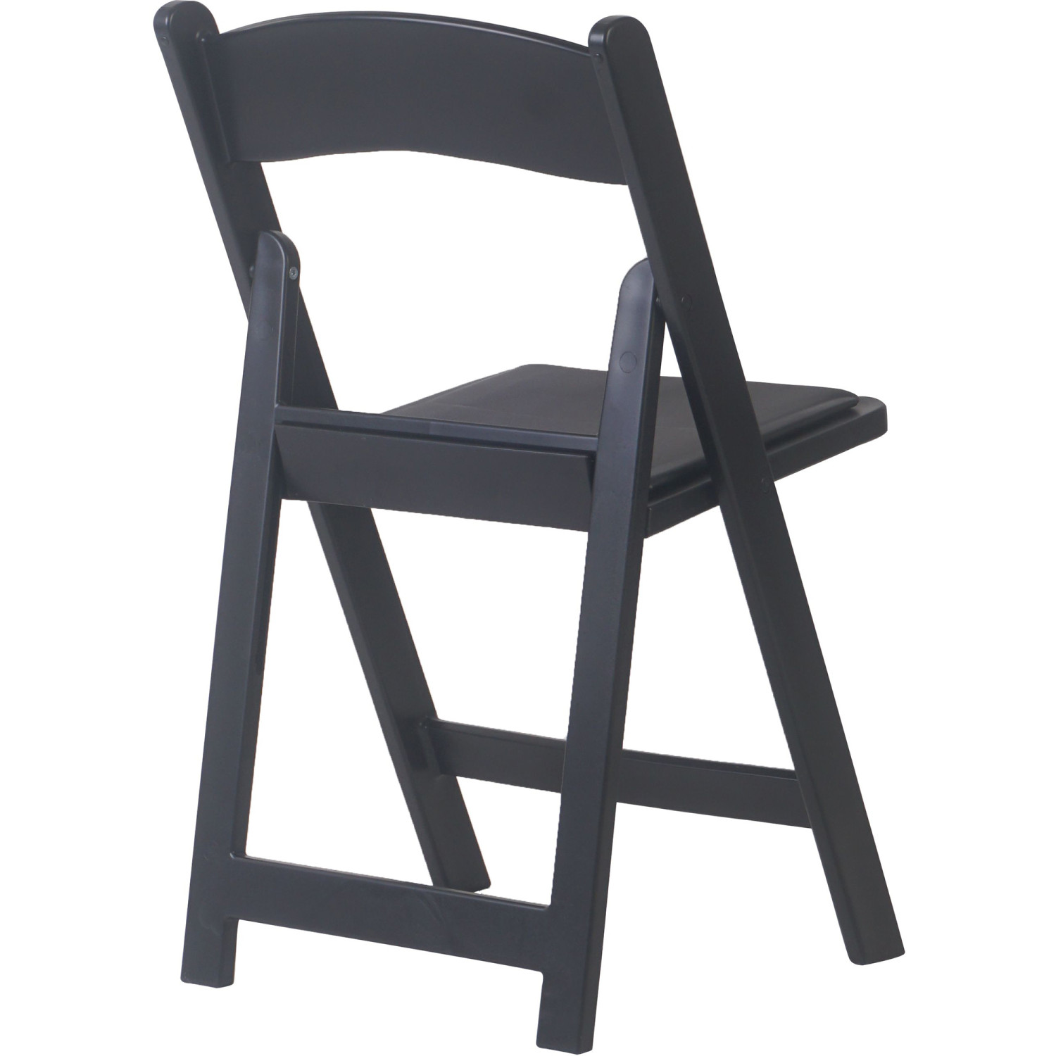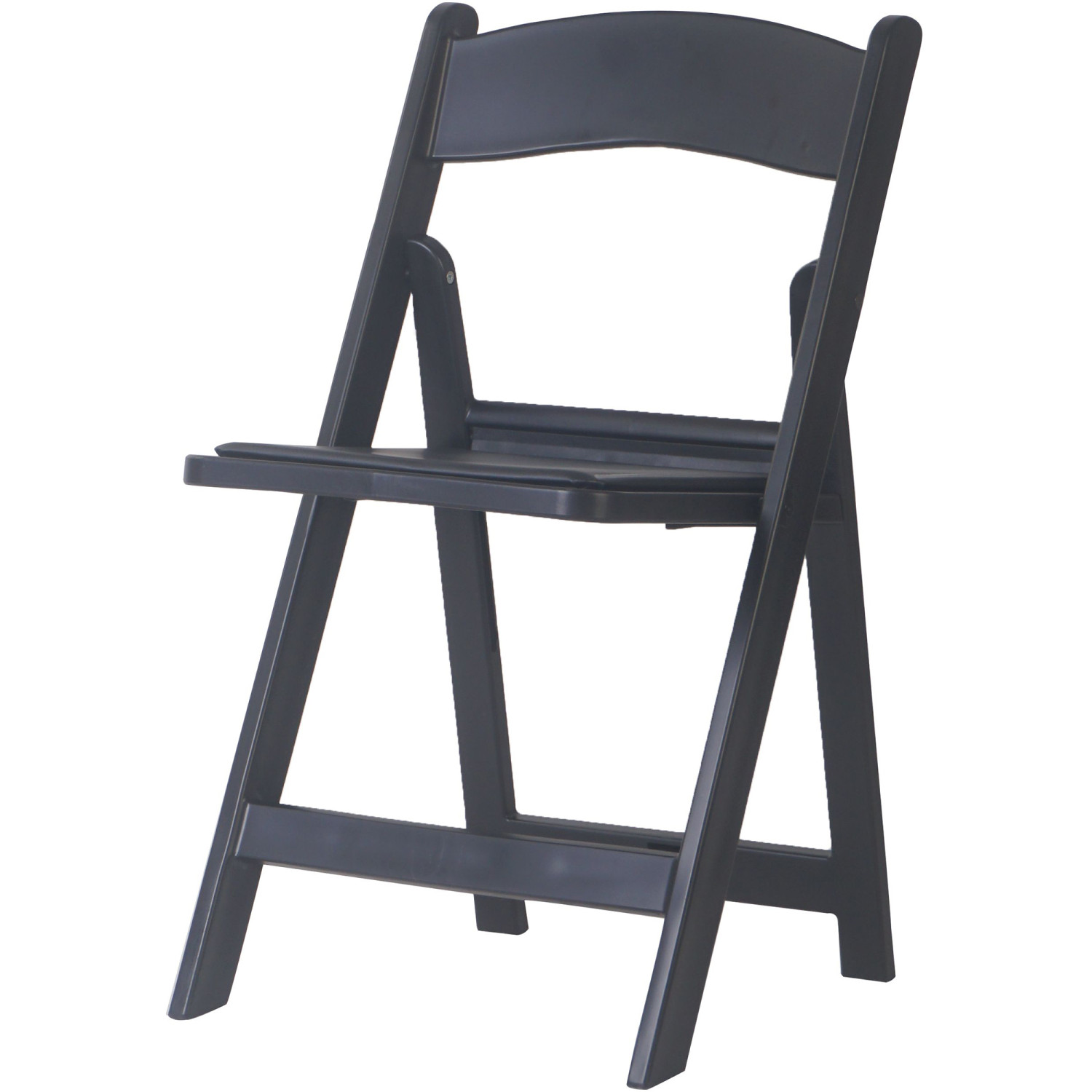 These chairs are perfect for extra seating that can be folded and stored away discreetly. Suitable for indoor use, this black resin material folding chair features a black vinyl cushion and can be easily folded away for storage.