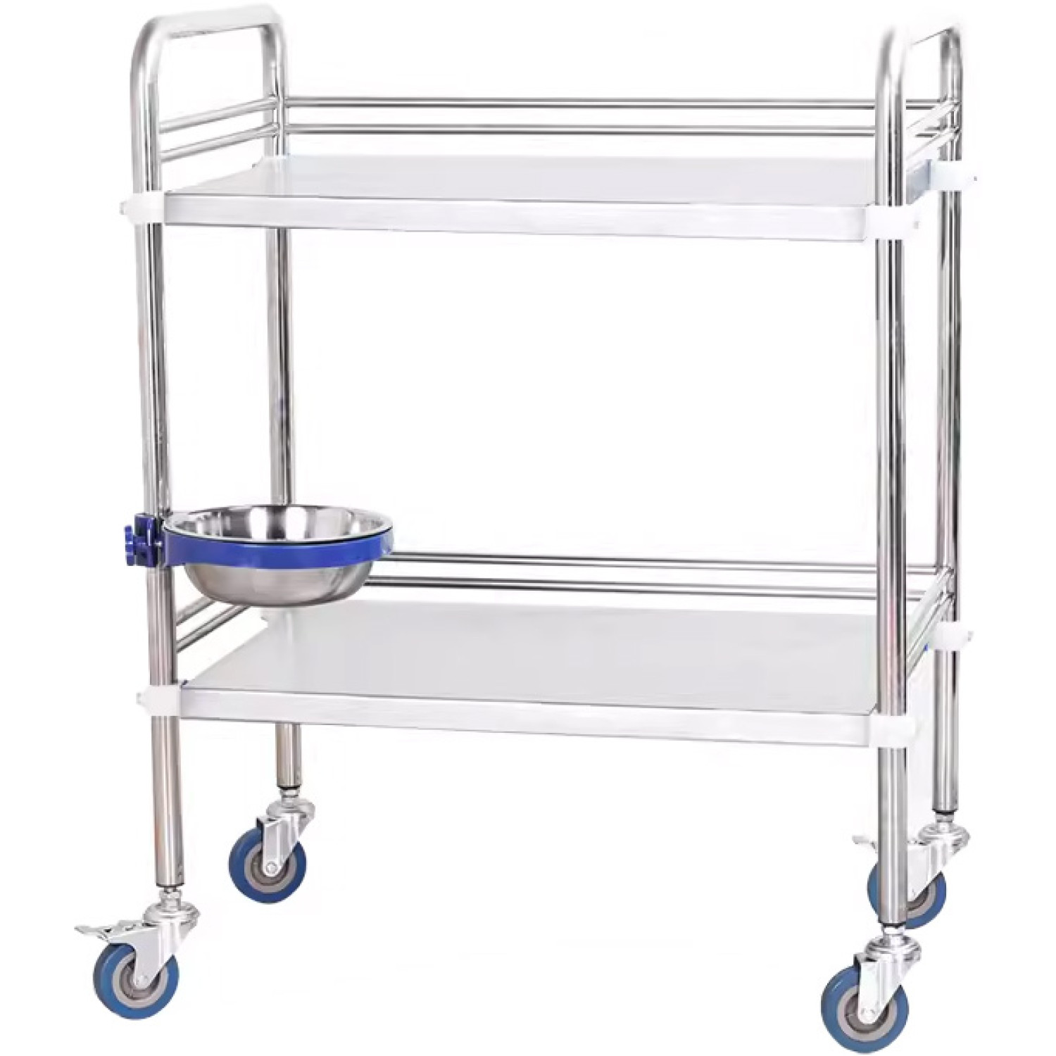This versatile 2-tier mobile medical trolley is designed to optimize your workflow and enhance patient care. Crafted from durable stainless steel, it offers a robust and hygienic solution for transporting medical equipment and supplies.