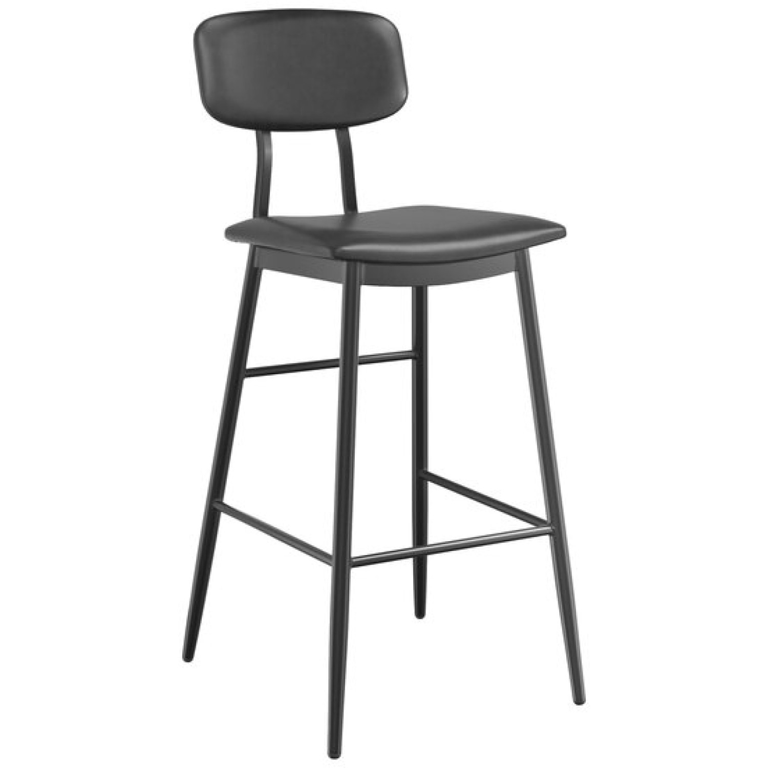 This barstool has a contemporary steel frame along with a comfortable, black vinyl seat and backrest. This stool is perfect for both bar and raised table seating and will provide unmatched comfort while maintaining a distinct appearance. Its reliable and modern design ensures you'll be using this barstool in your pub or restaurant for years to come. This barstool is the last one you'll ever need to buy!