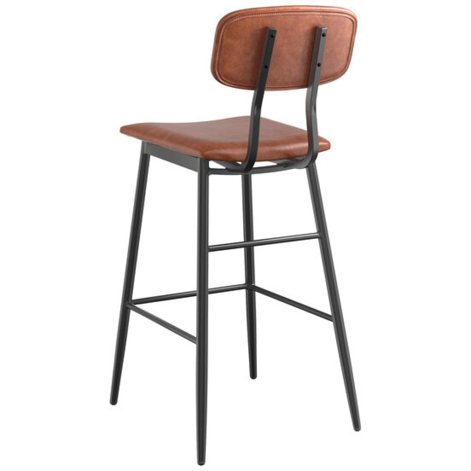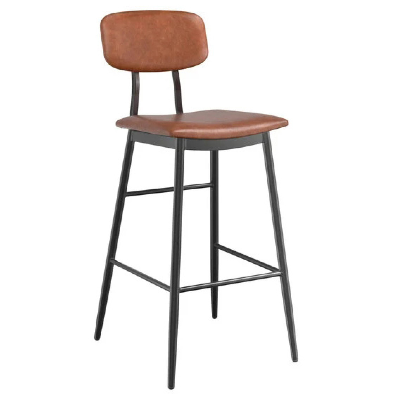 This barstool has a contemporary steel frame along with a comfortable, brown vinyl seat and backrest. This stool is perfect for both bar and raised table seating and will provide unmatched comfort while maintaining a distinct appearance. Its reliable and modern design ensures you'll be using this barstool in your pub or restaurant for years to come. This barstool is the last one you'll ever need to buy!