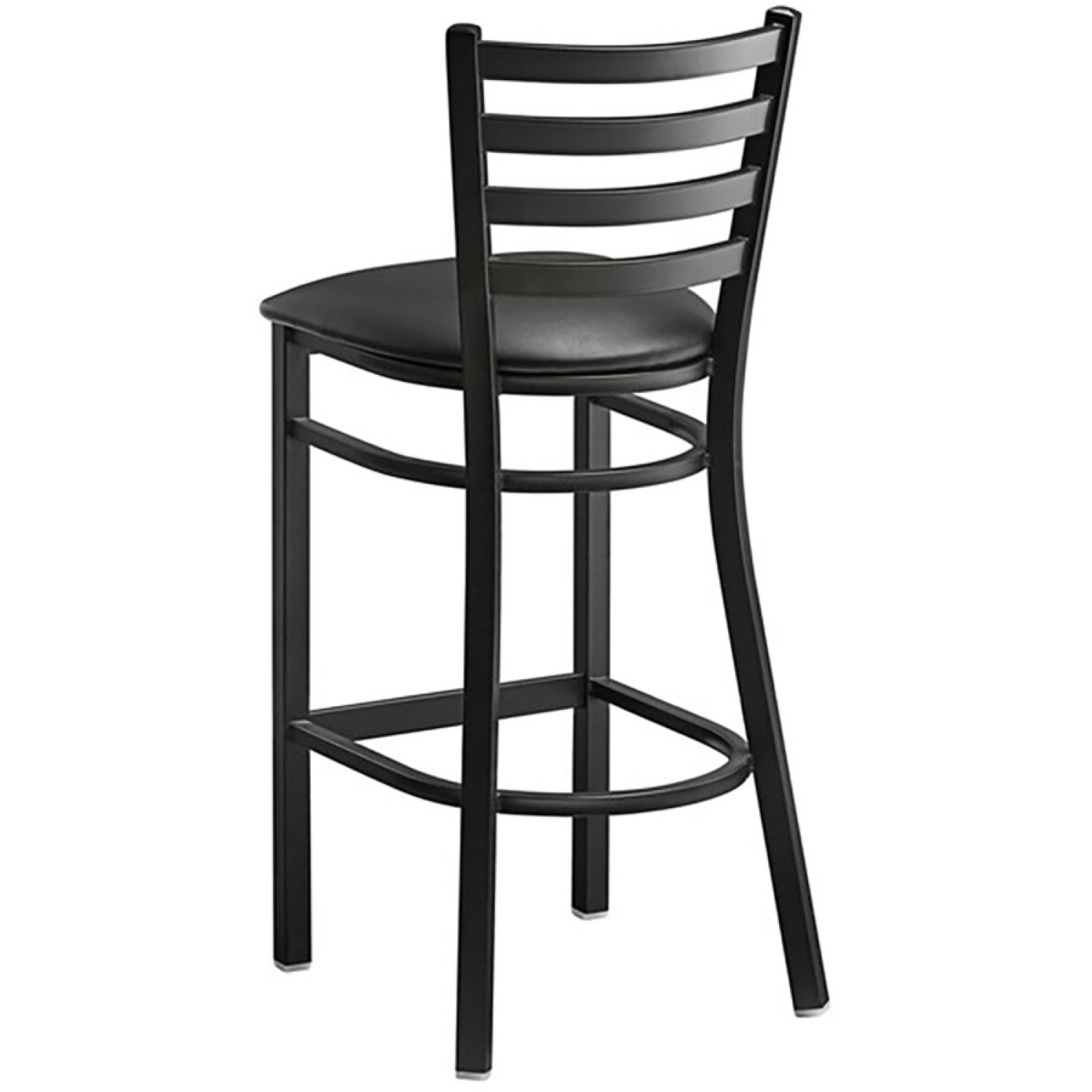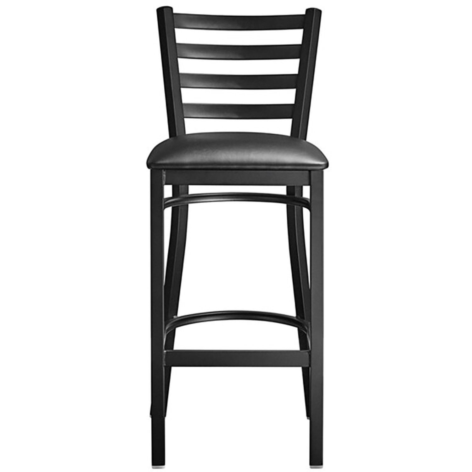 This barstool has a contemporary steel frame along with a comfortable, black vinyl seat. This stool is perfect for both bar and raised table seating and will provide unmatched comfort while maintaining a distinct appearance. Its reliable and modern design ensures you'll be using this barstool in your pub or restaurant for years to come. This barstool is the last one you'll ever need to buy!