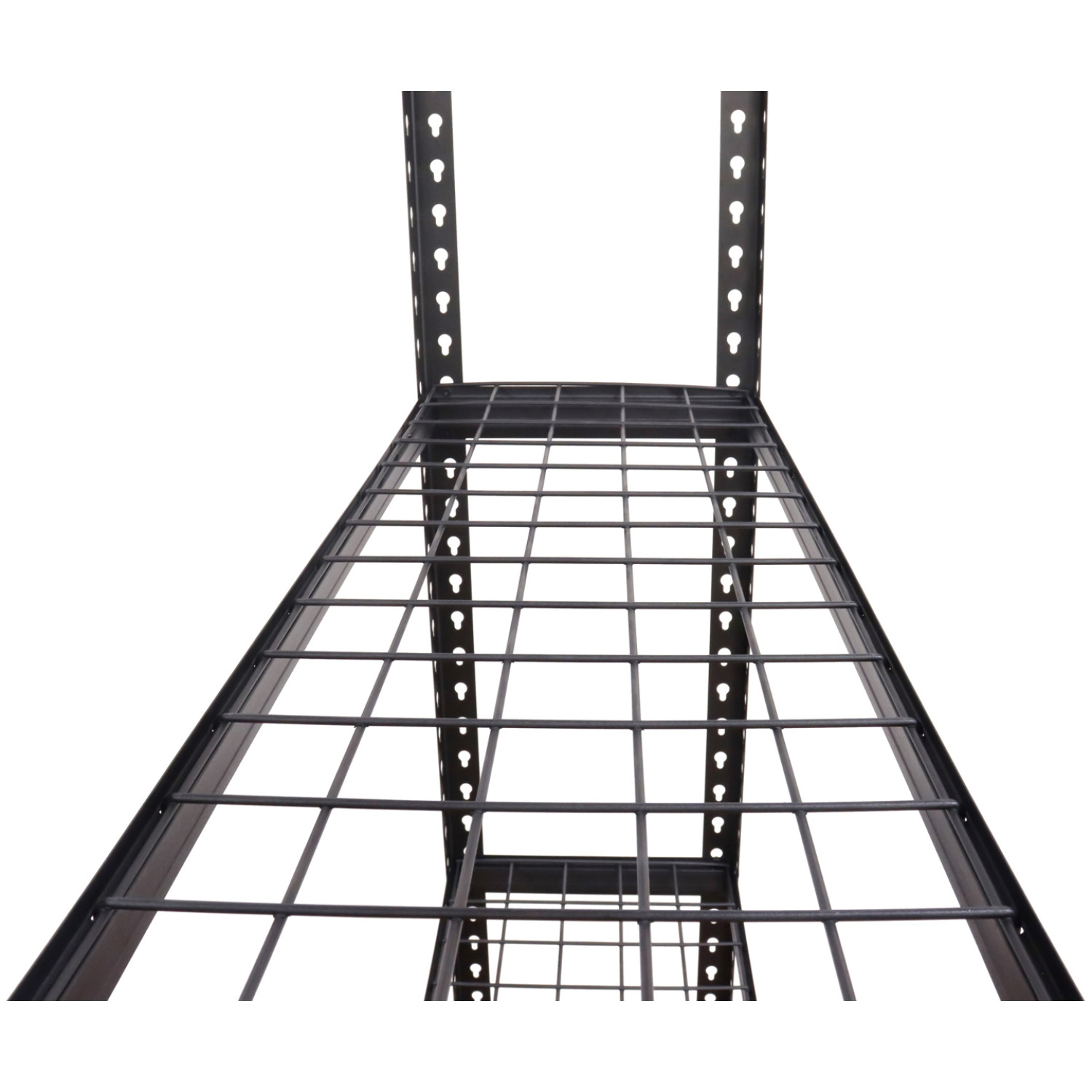 For light duty professional usage, this black shelf kit will save space and organize storage areas in your restaurant, hotel, bar, or warehouse.