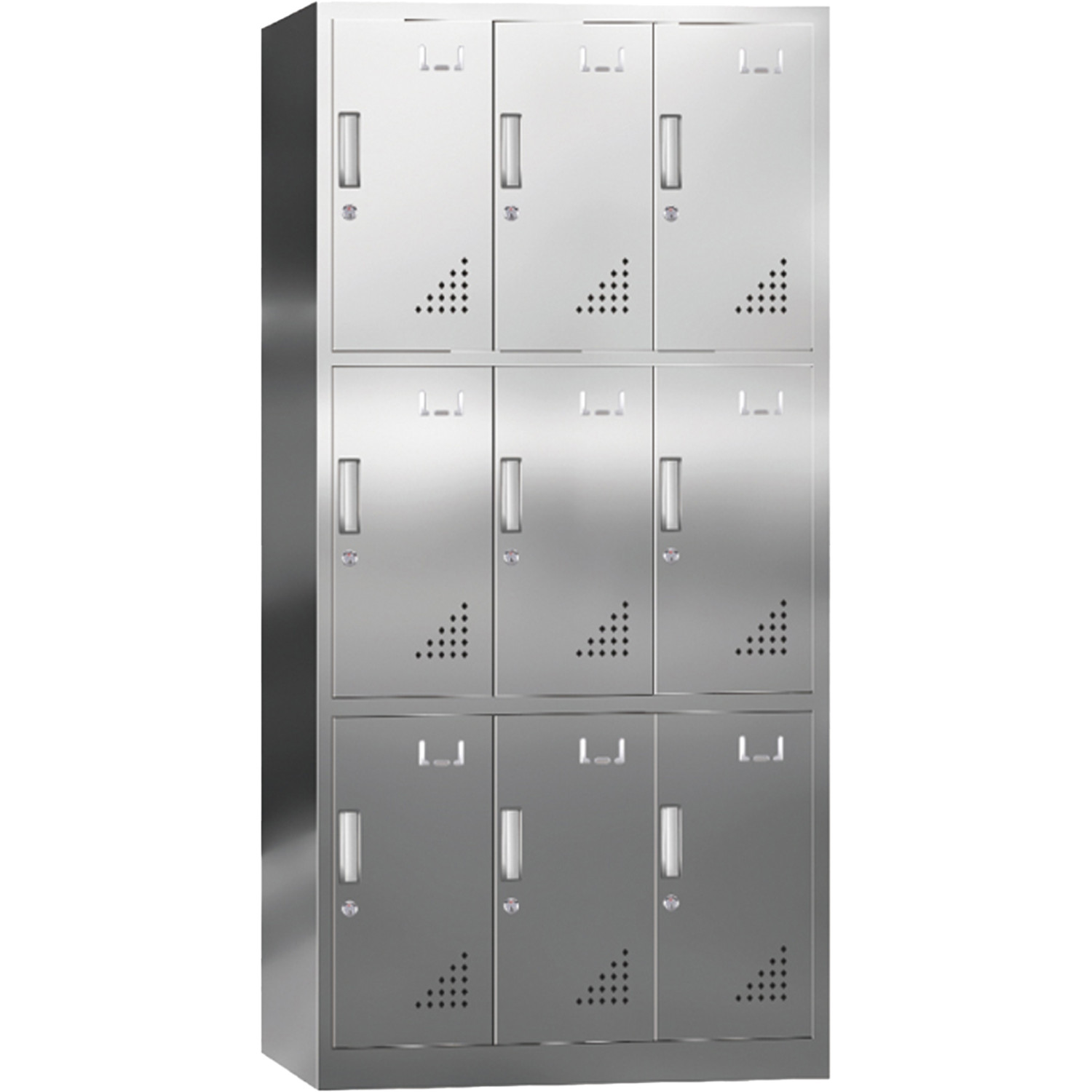 Ideal for company changing rooms and locker rooms, this locker features 9 separate compartments with doors, providing ample storage space for keeping clothes and other personal belongings safe.
