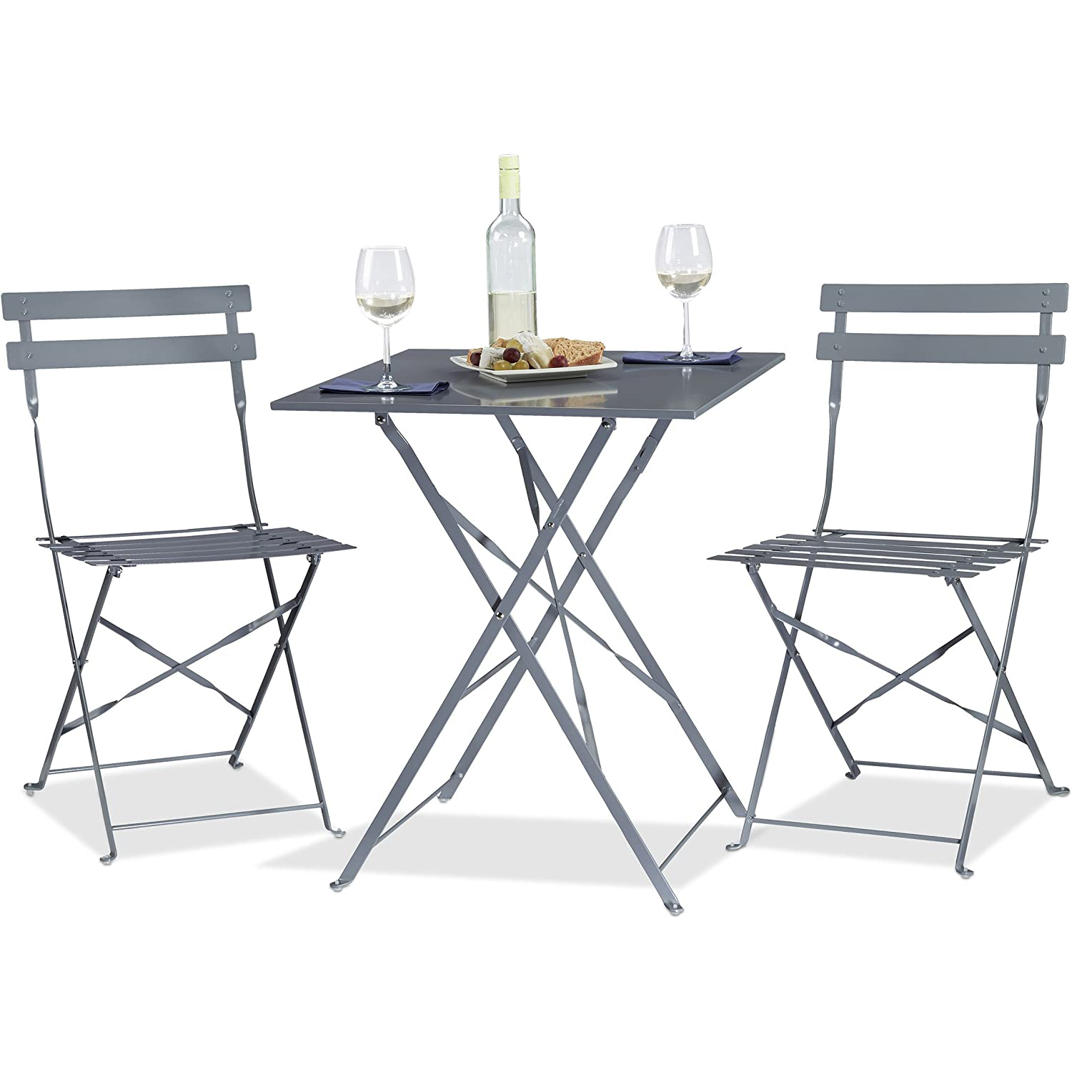 Folding Bistro Set Table & 2 Chairs Grey - CEWW178GREY