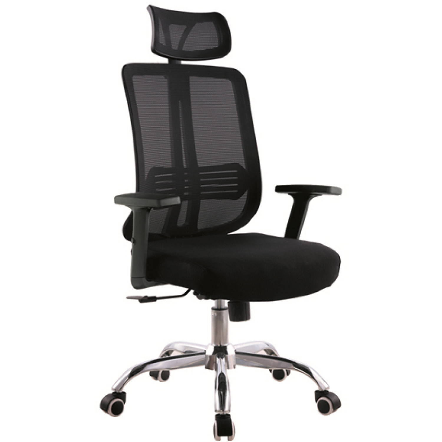 Mesh Office Chair with Headrest Black & Chrome - CEHY8031