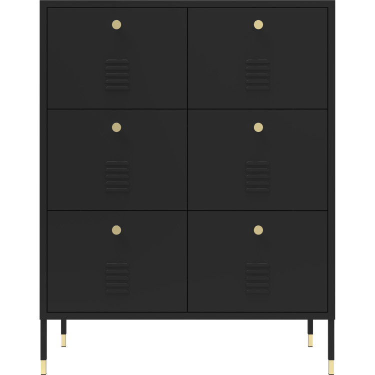 This steel storage cabinet with 6 drawers is perfect for storage, featuring 6 spacious drawers with handles. The sleek black design with gold accents is the ideal addition to your study, home office or bedroom furniture. A bargain at this discount price!