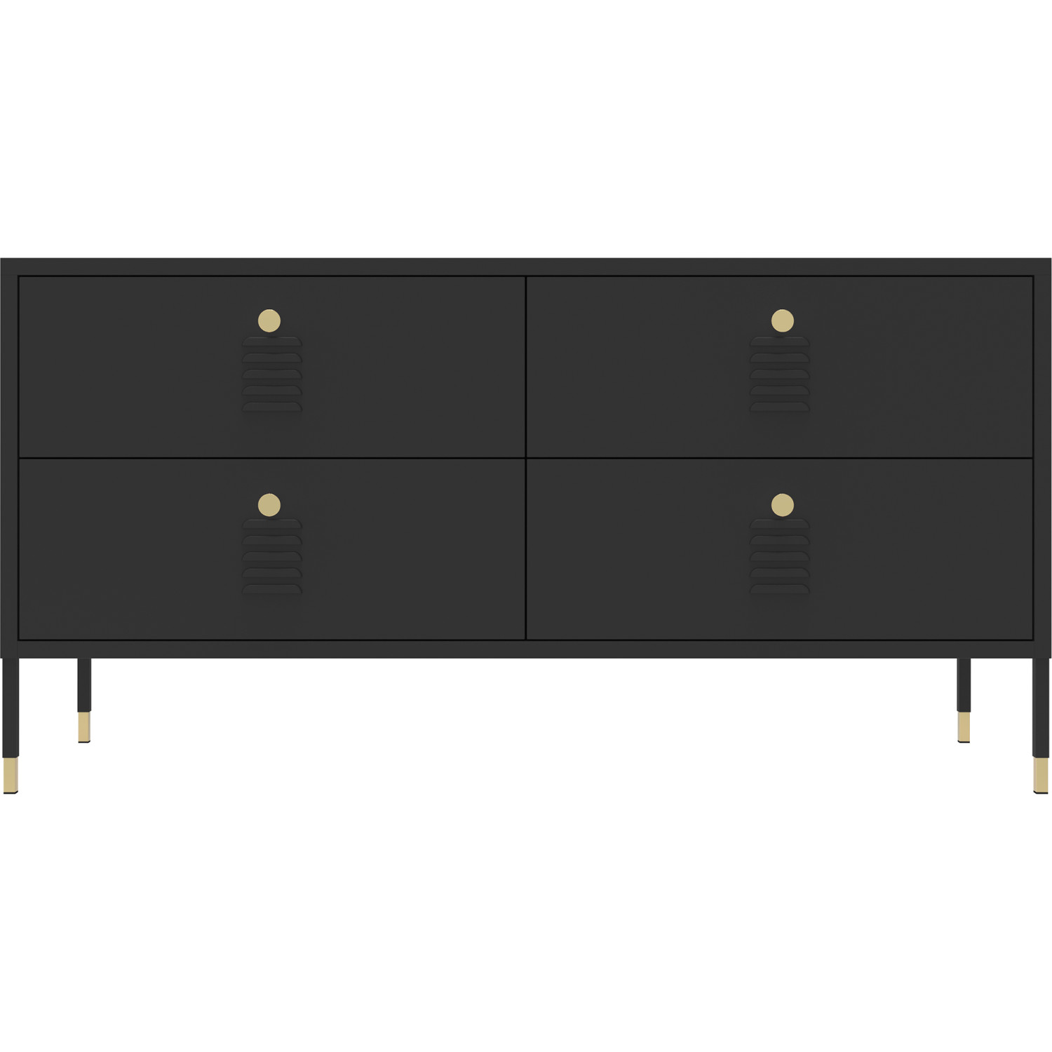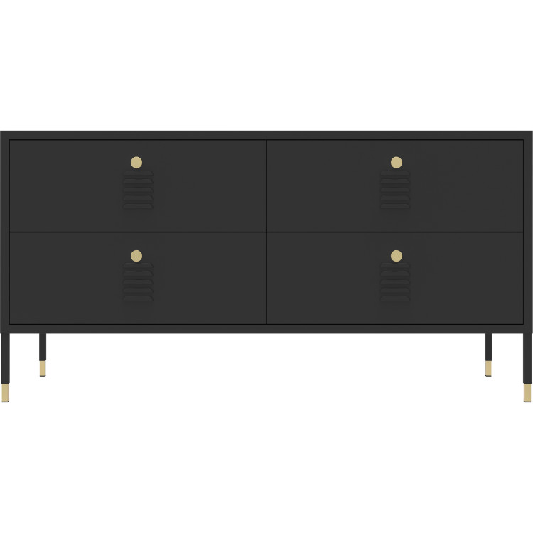 This steel TV cabinet stand with 4 drawers features a sleek black design with gold accents. The ideal addition to your living space at this bargain pice!
