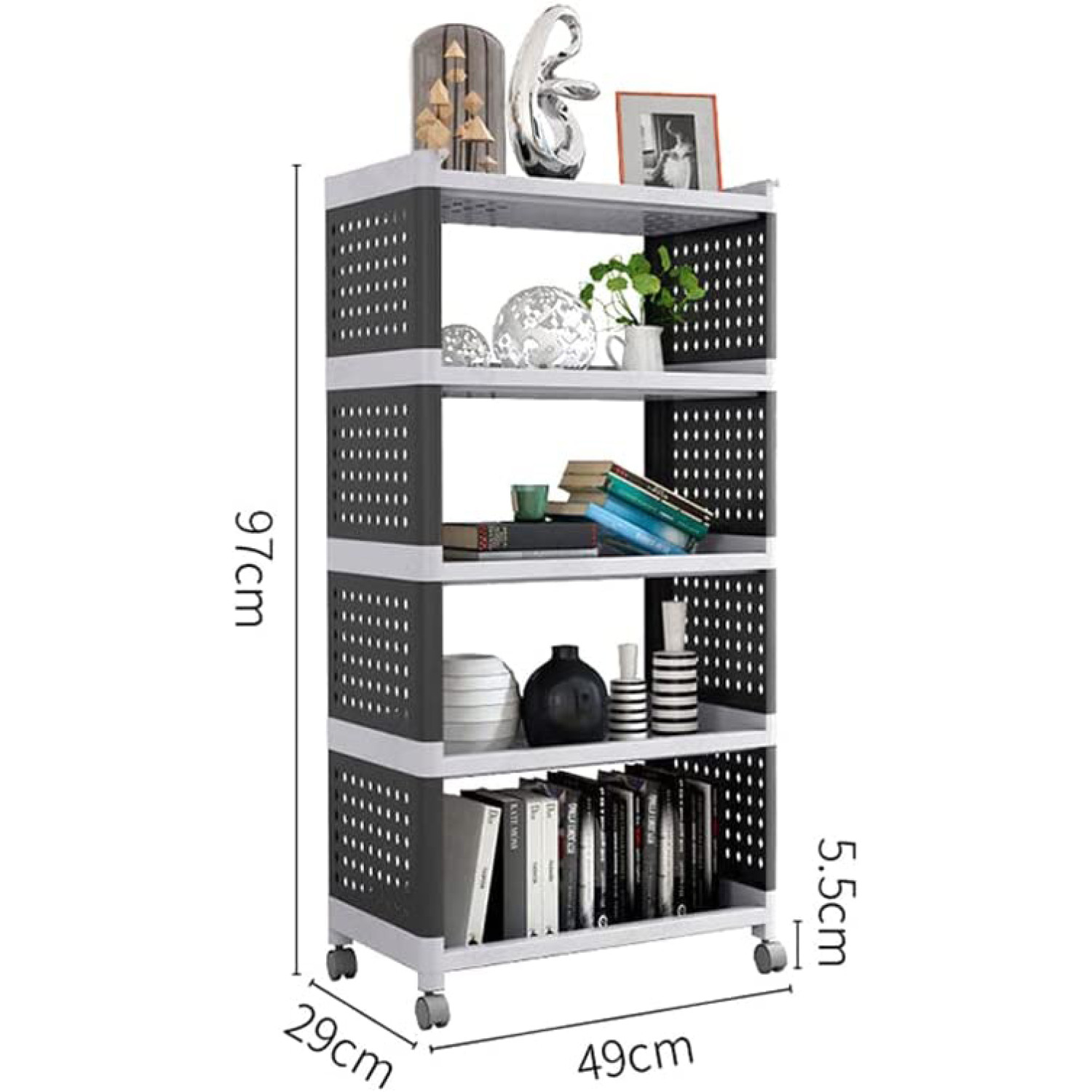 Mobile Plastic Shelving Unit 5 tier Black & Grey 490x290x970mm - CEPP5