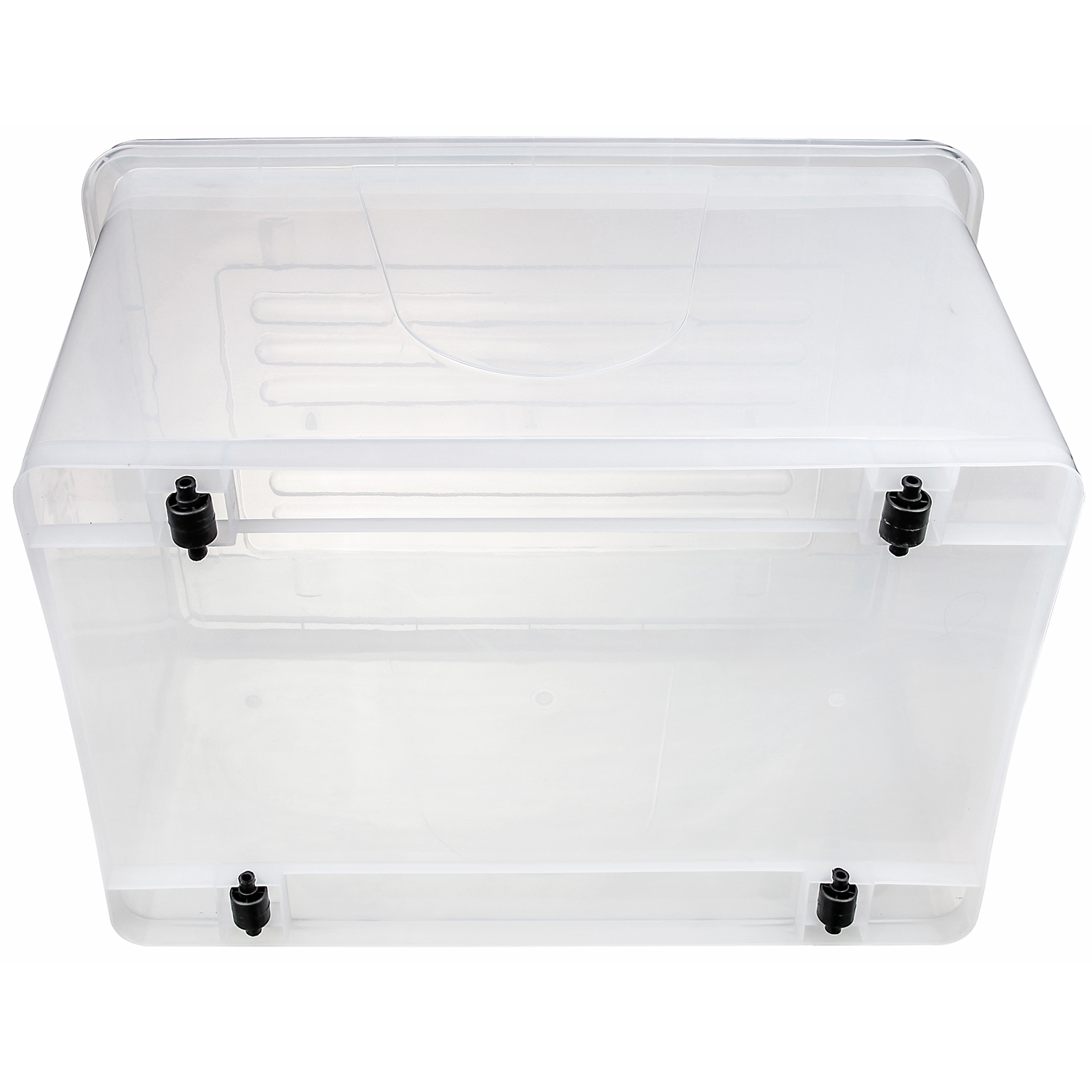 Perfect in any room in your home or business to keep you organized. Quickly identify contents with clear lid and body. Stack multiple units to maximize storage space in a closet, basement, or under a bed. Use to store seasonal clothing, board games, and much more!