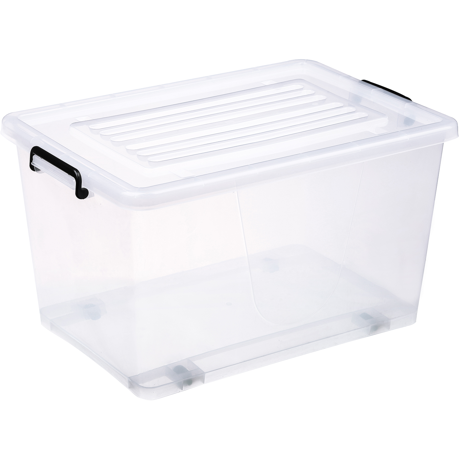 Pack of 8 Plastic Storage Box with Wheels & Lid & Clips 70 litre 630x433x355mm Polypropylene - CES1070