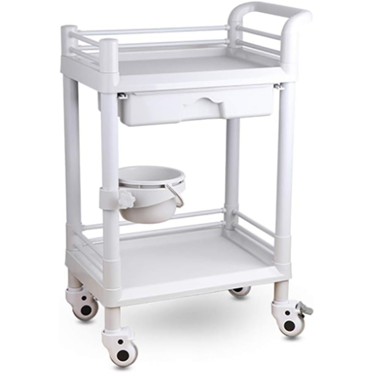 Professional 2 Tier Mobile Medical Trolley 1 Drawer ABS 540x370x900mm - CEWH2ST5437D