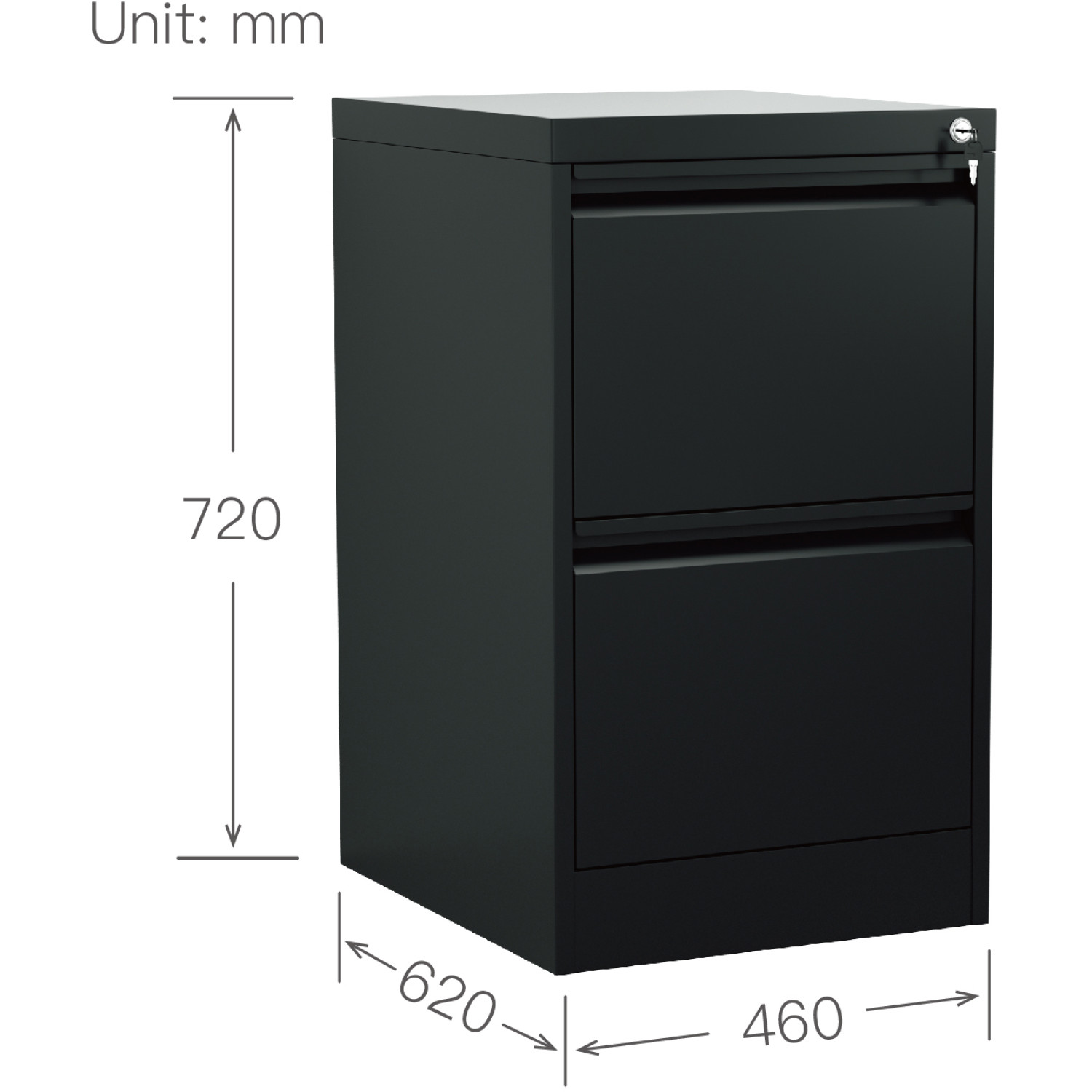 Professional Filing Cabinet 2 drawer 460x620x720mm Black - CEMXDC1BLACK