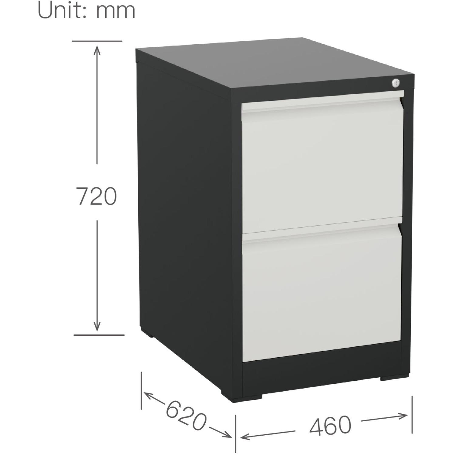 Professional Filing Cabinet 2 drawer 460x620x720mm Dark Grey & White - CEMXDC1DARKGREY