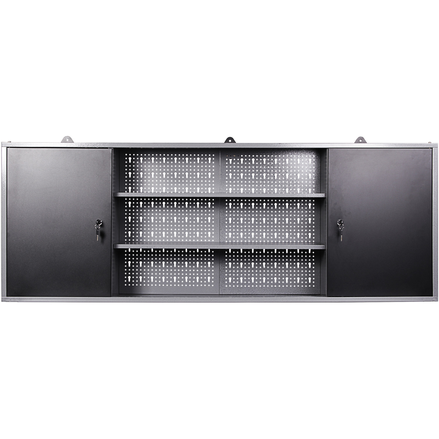 Professional Grey and Black Wall Mounted Double Door Tool Cabinet with Open Shelf/Rack and Key 1600x200x600mm - CETC003A