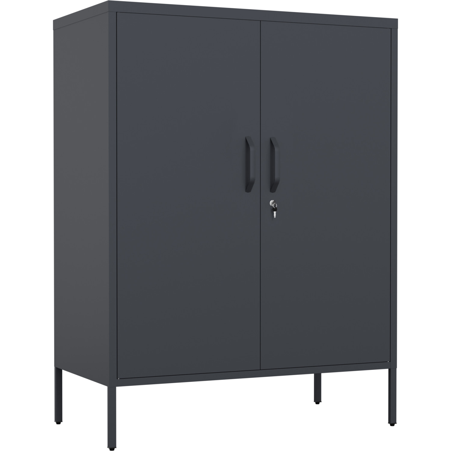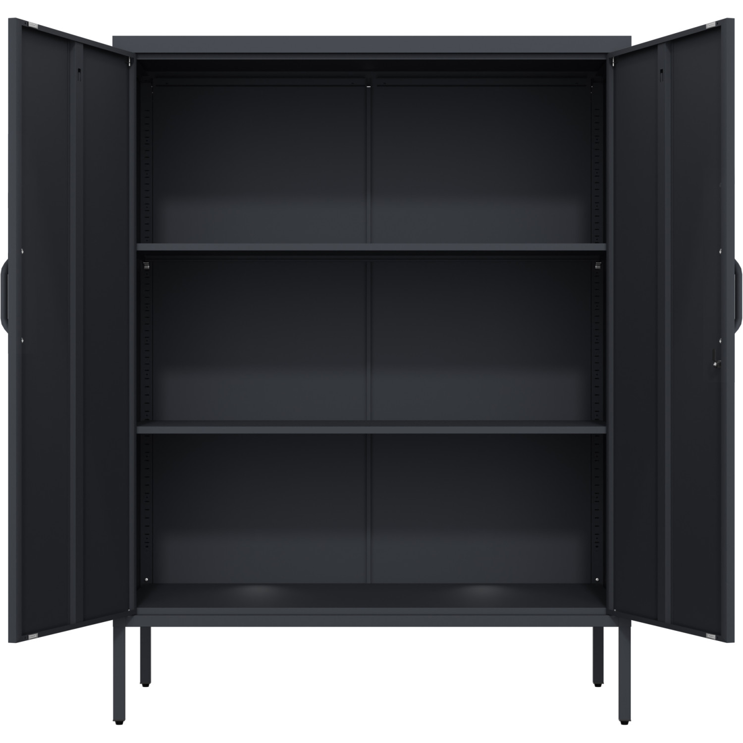 Elevate your storage with this sleek steel cabinet featuring 2 adjustable shelves and double hinged doors. Durable powder coating ensures a long-lasting, stylish look for your home or office.
