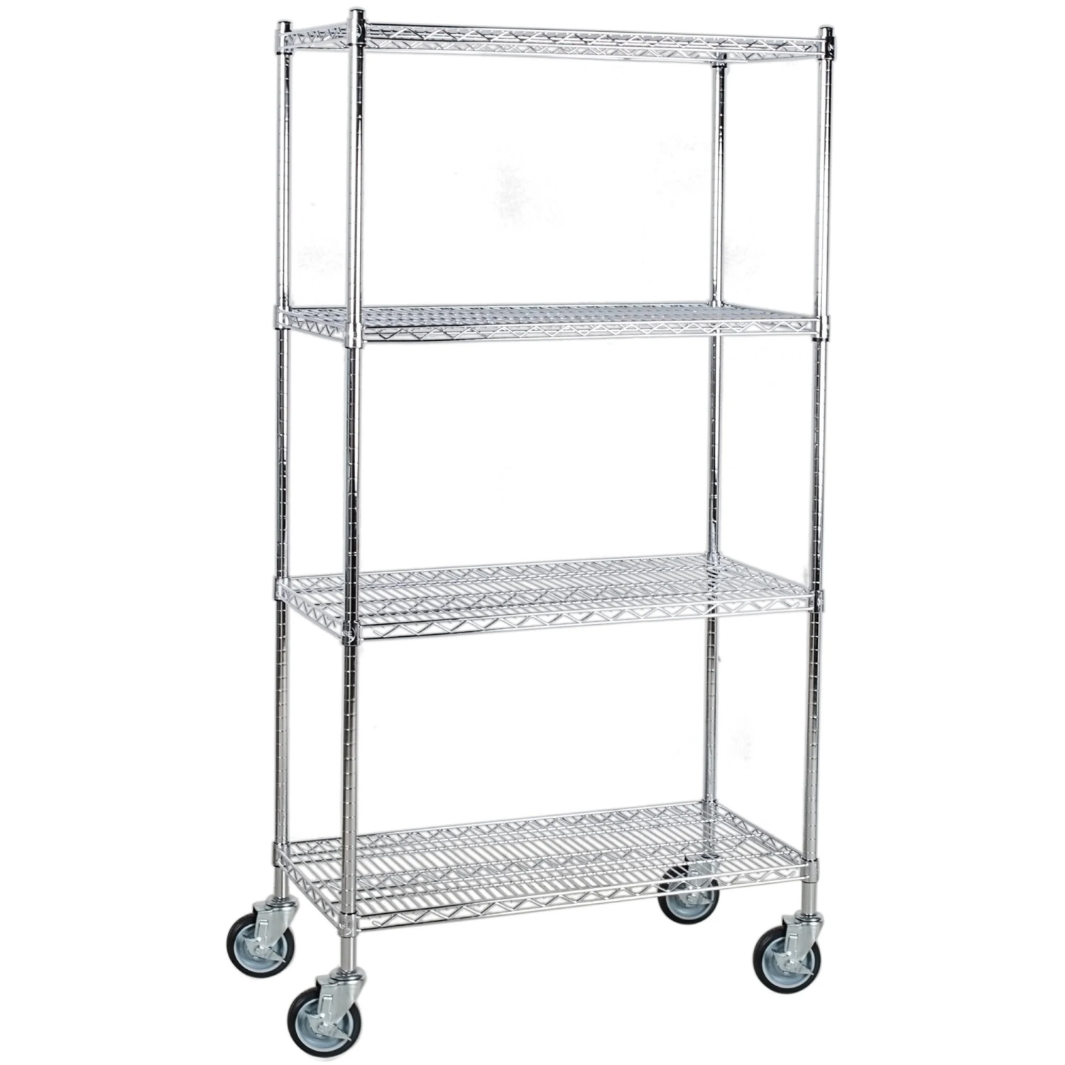 Professional Wire Shelving Unit 4 tier Grey Mobile 560x350x1200mm - CEW4T