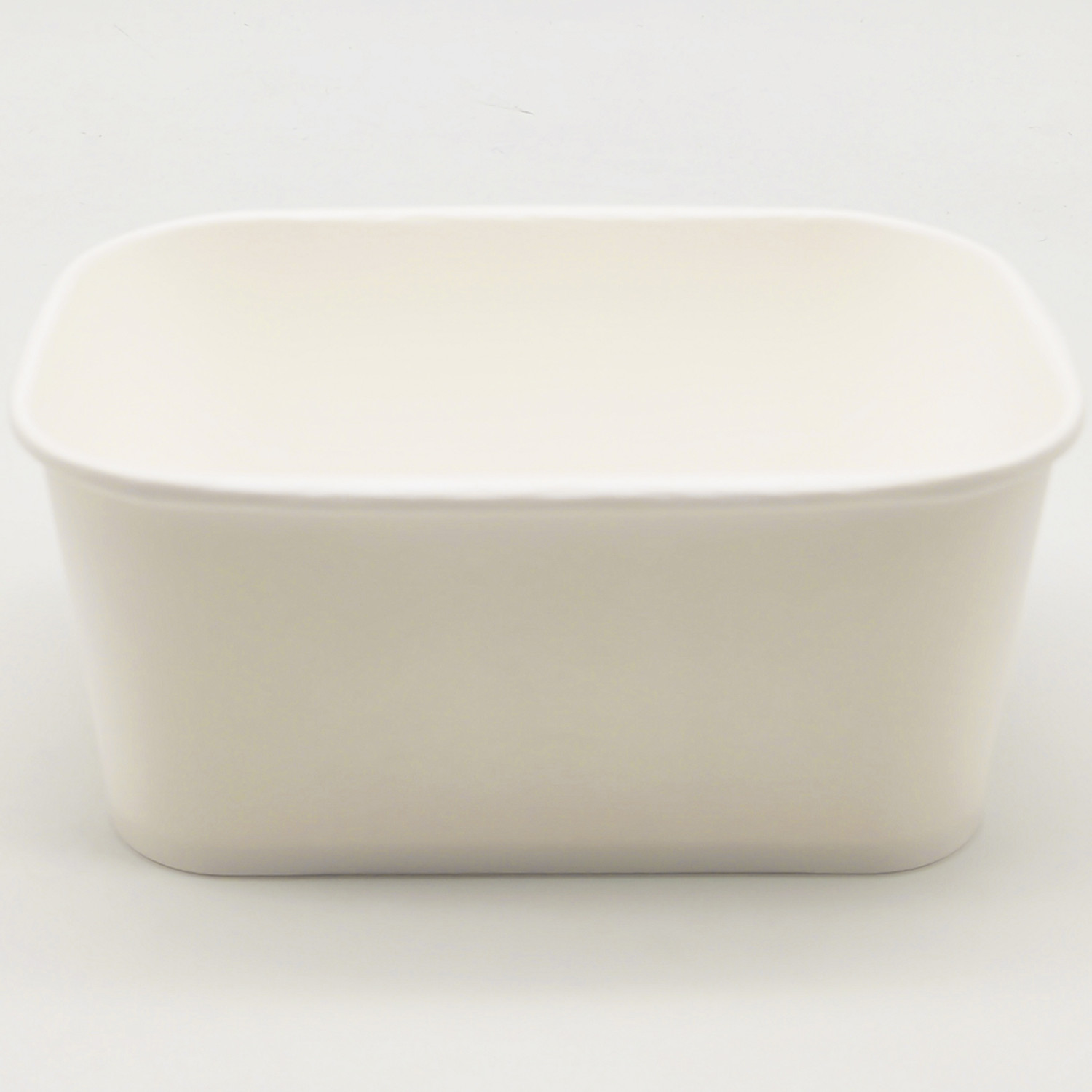 Disposable rectanuglar bowls made of PE (polyethylene) coated paper, providing a very strong moisture and grease barrier.