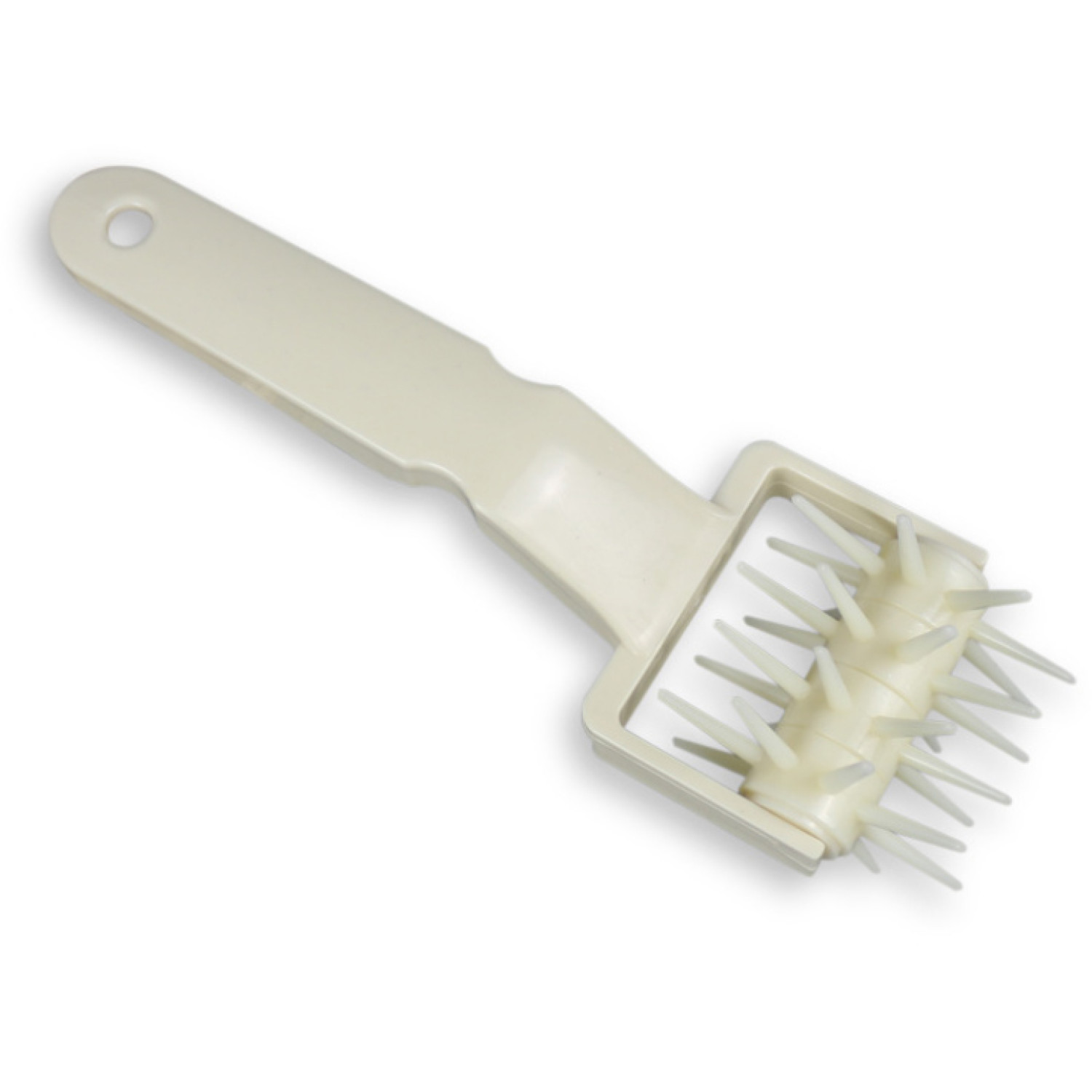 Create quick and easy punctures in your pizza dough with this small pizza dough docker. It's important to condition your dough for an ideal rise and this roller style docker means you can get the job done with ease. This docker is a quick and lightweight option to increase the productivity of your operation.