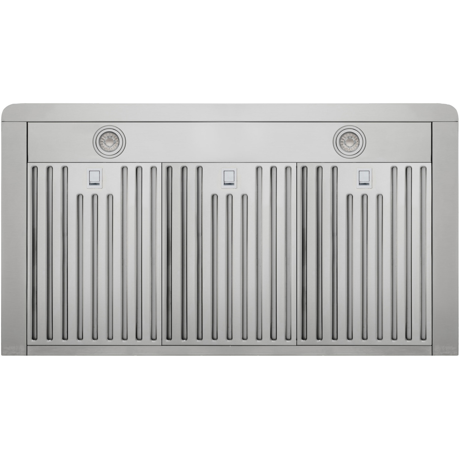 - EFFICIENT AIRFLOW: 560 CFM range hood with backlit touchscreen, remote control, 3-speed fan, twin centrifugal motors.