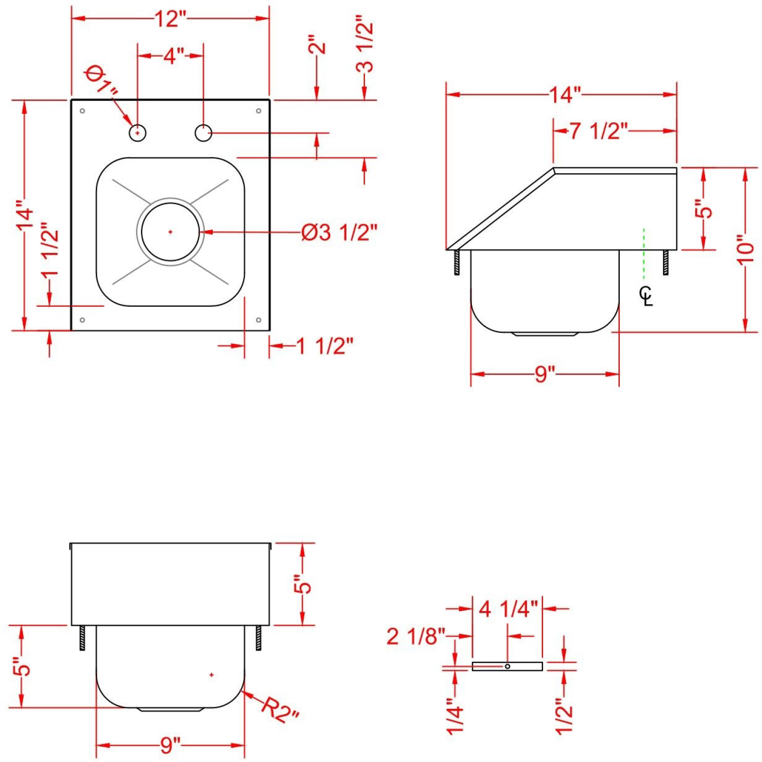 • 1 drawn bowl 229x229x127mm