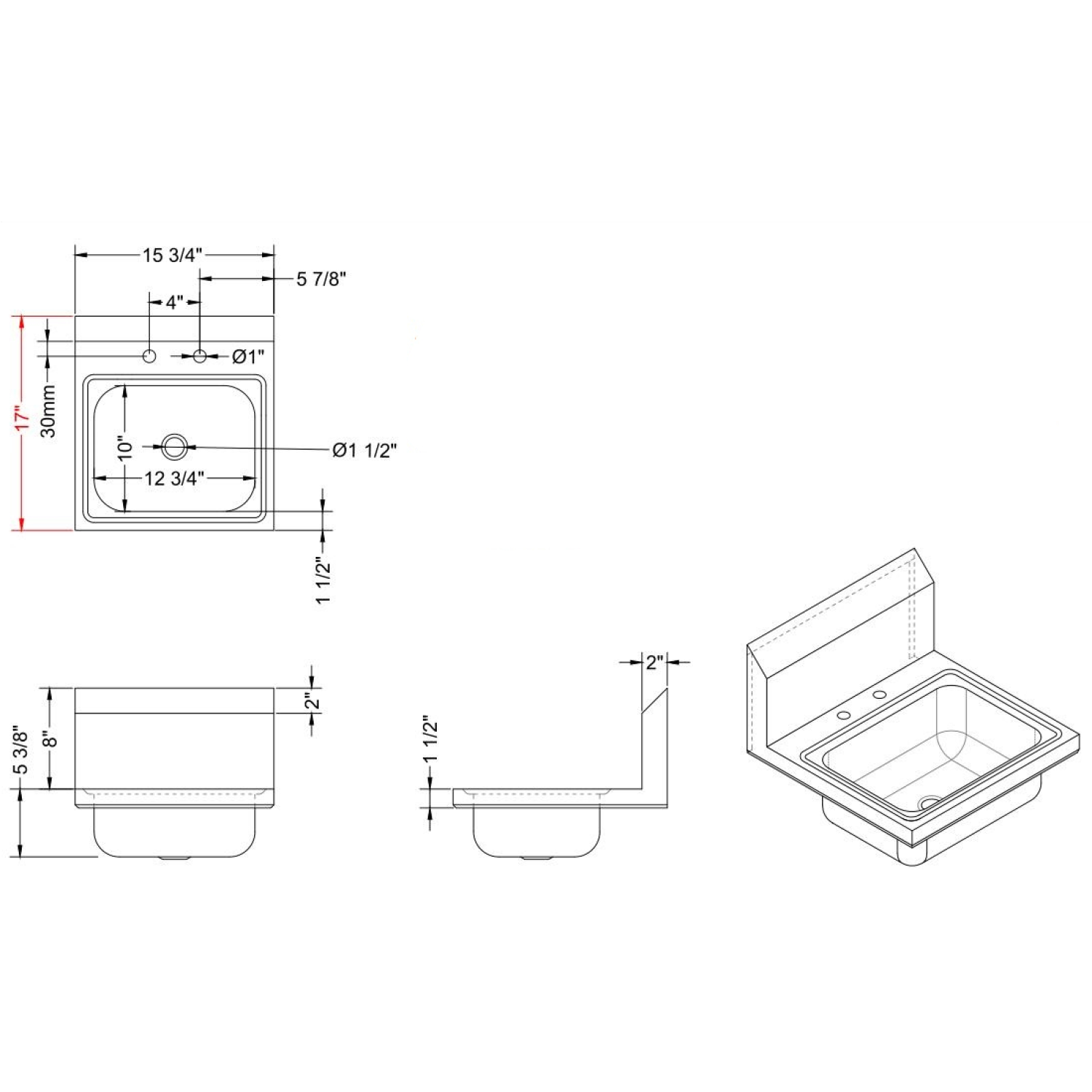 Wall mounted Hand Sink Deck mounted faucet Stainless steel - CEHS15DH