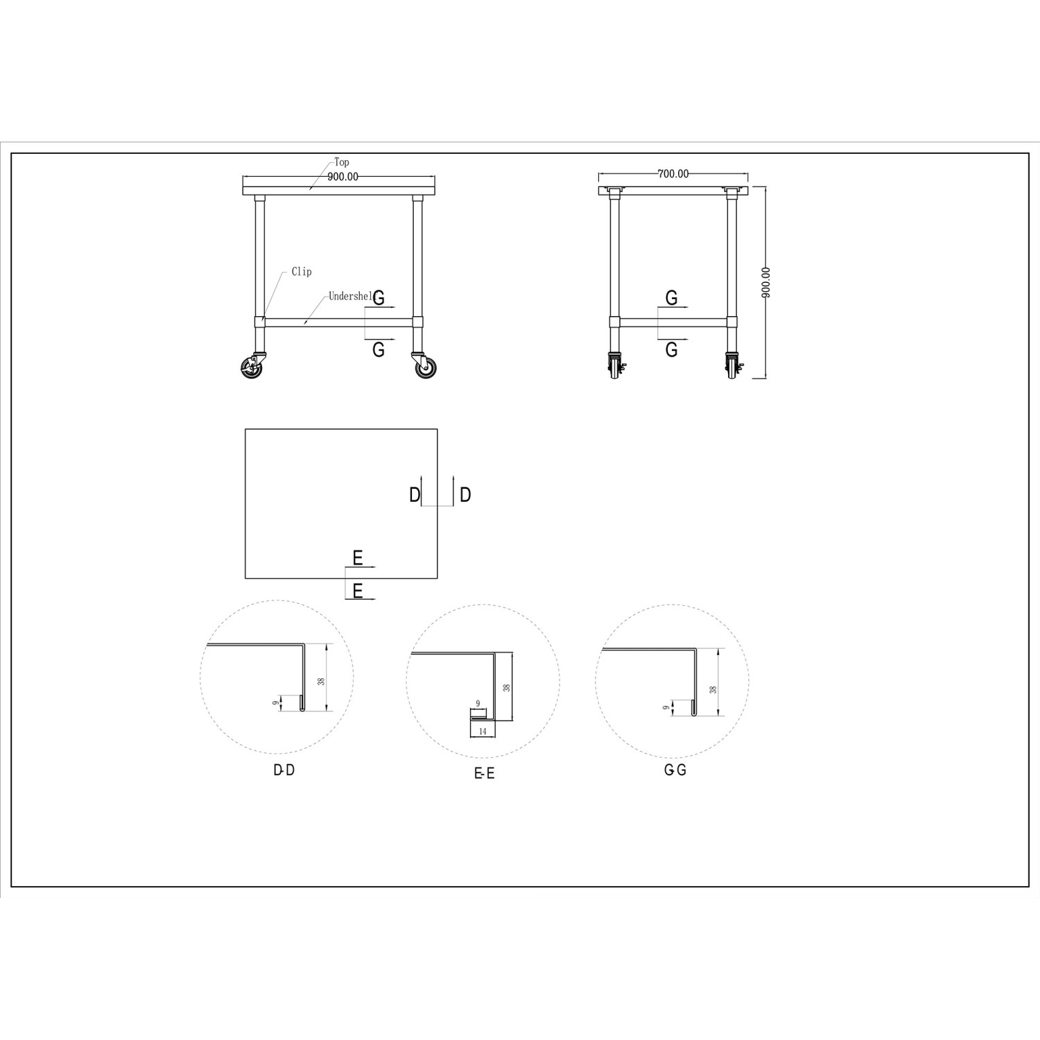 Commercial Mobile Stainless Steel Work Table Bottom shelf 900x700x900mm - CEWT7090GMOBILE