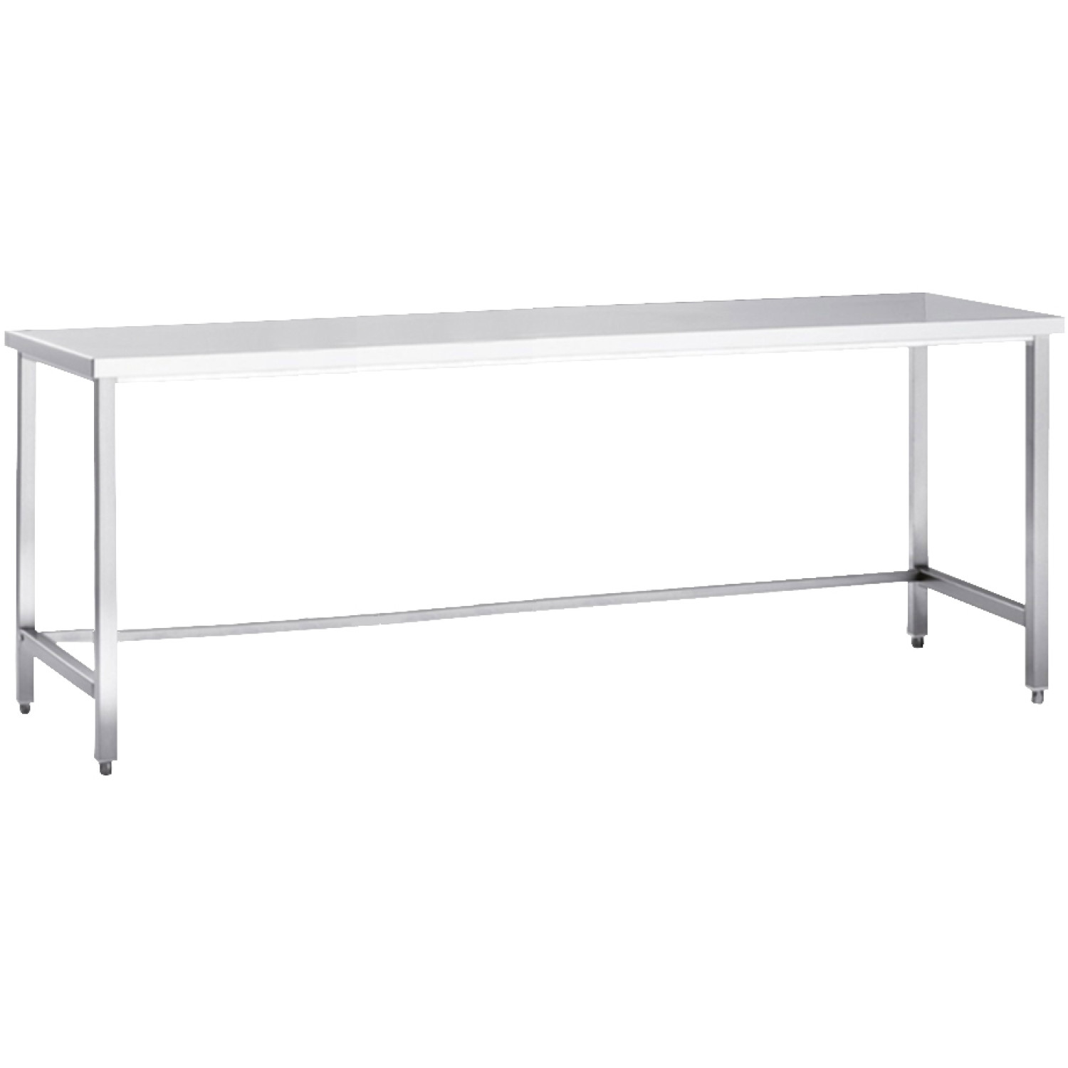 This stainless steel worktop table is an economical way to ensure the staff of your commercial restaurant operation has ample clearance to place undercounter fridges, ice machines or similar items under it.
