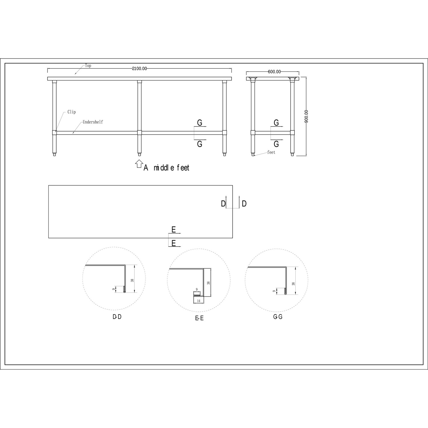 Commercial Stainless Steel Work Table No Bottom shelf 2100x600x900mm - CEWT60210GNU