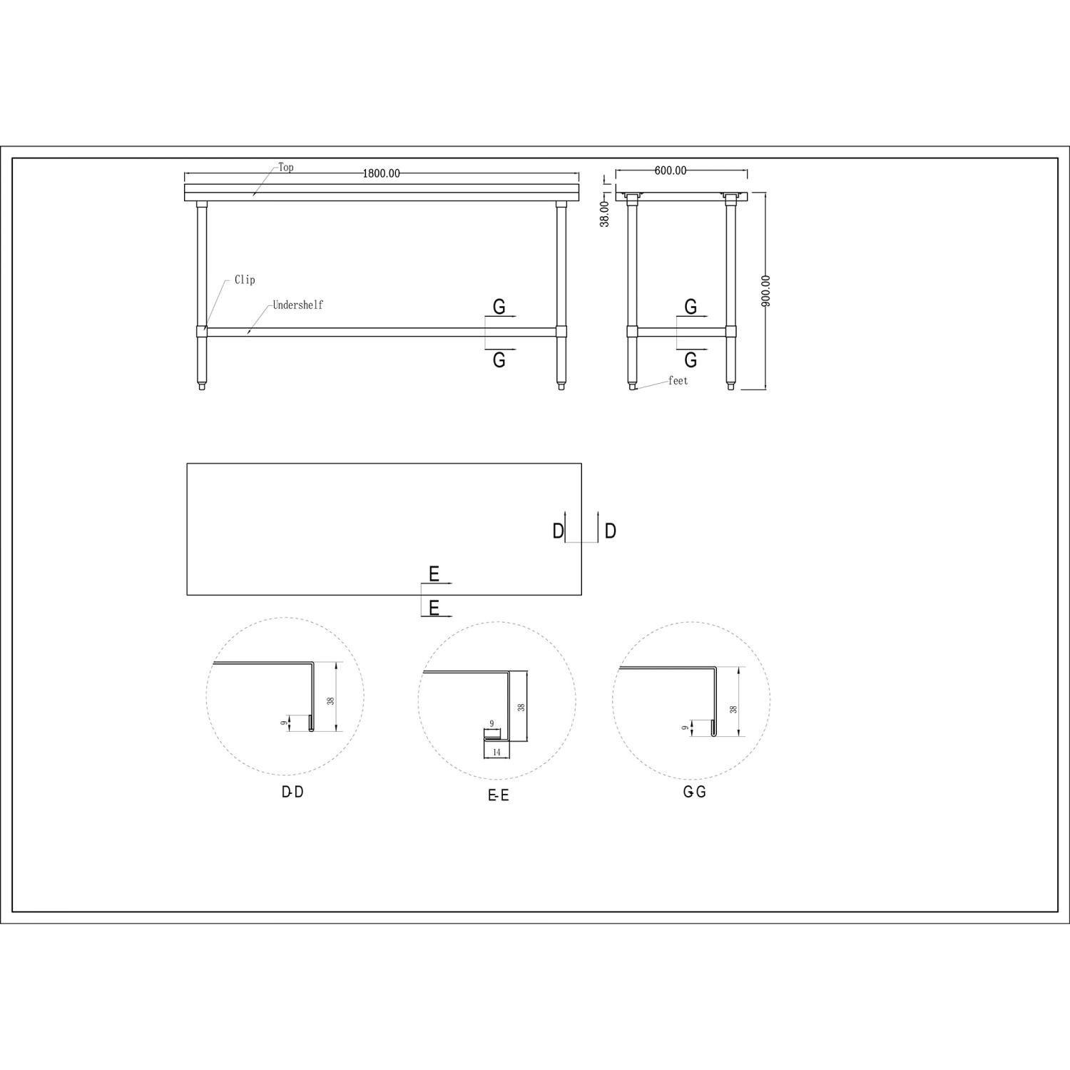 Commercial Stainless Steel Work Table Upstand 1800x600x900mm - CEWT60180GB