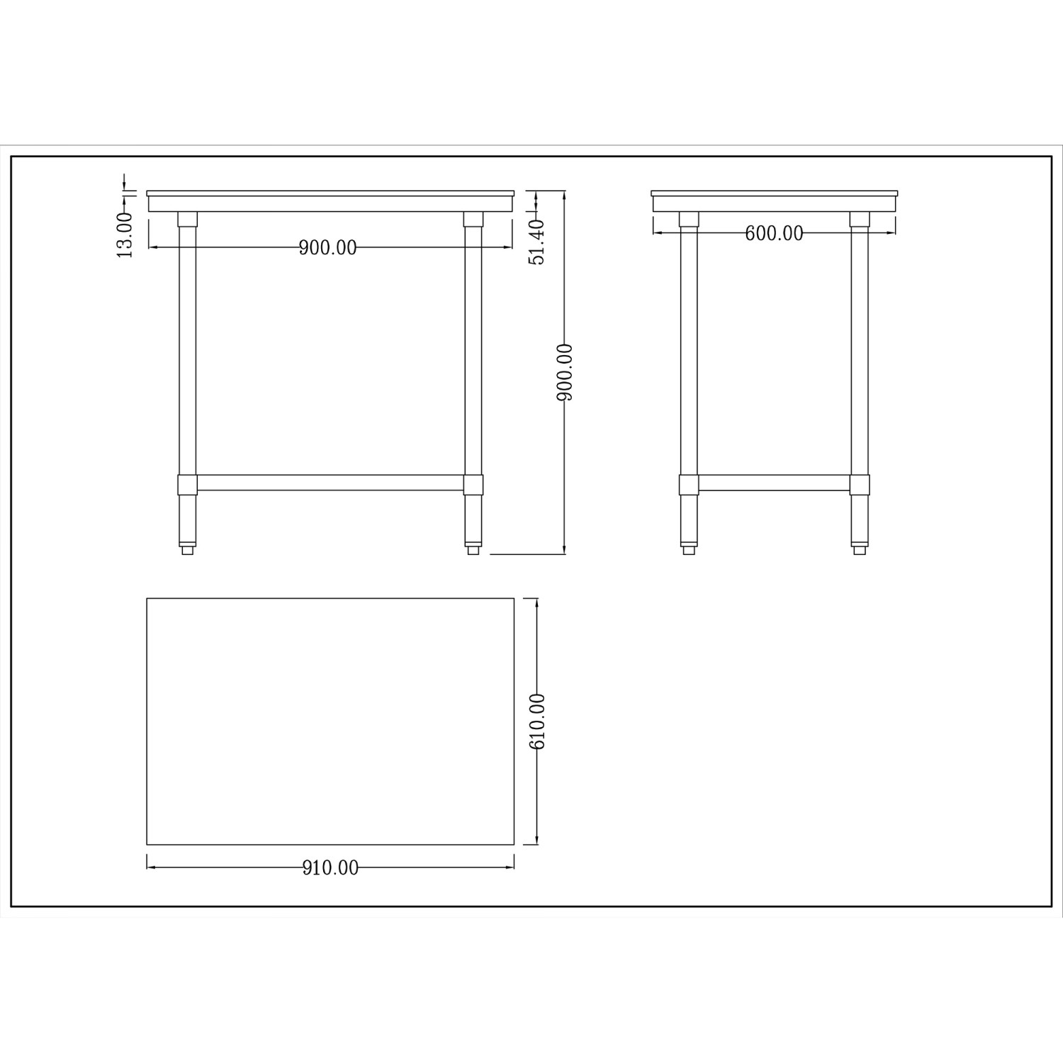 Commercial Stainless Steel Work Table No Bottom shelf 900x600x900mm - CEWT6090GNU