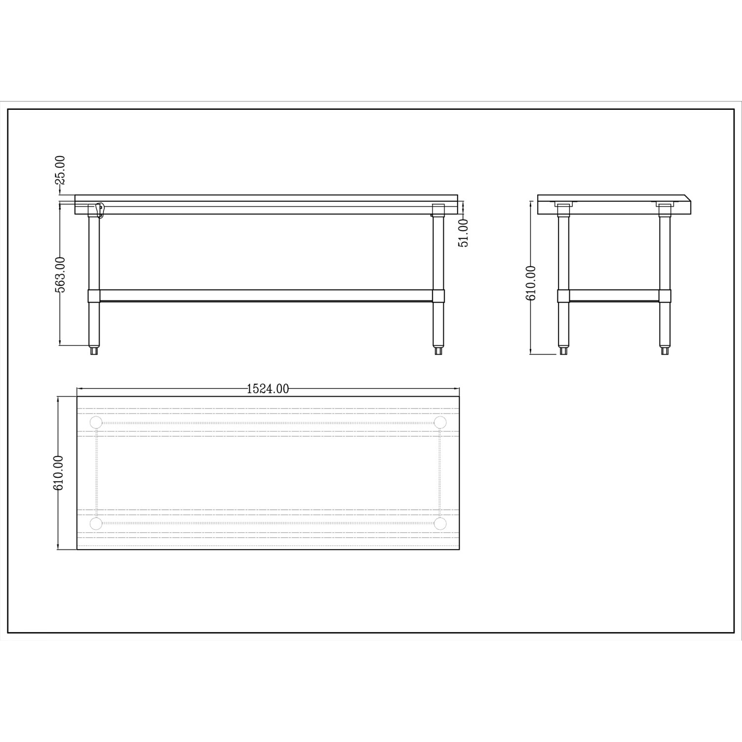 Material | Stainless steel 1.2mm (worktop) / Galvanized steel (legs & bottom shelf) |