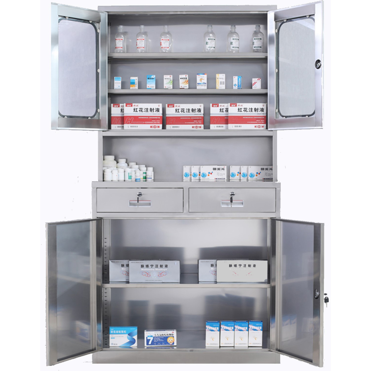Commercial Stainless Steel Cabinet 3 Shelves 2 Drawers 4 Door 850x500x1850mm - CEMYSLC14