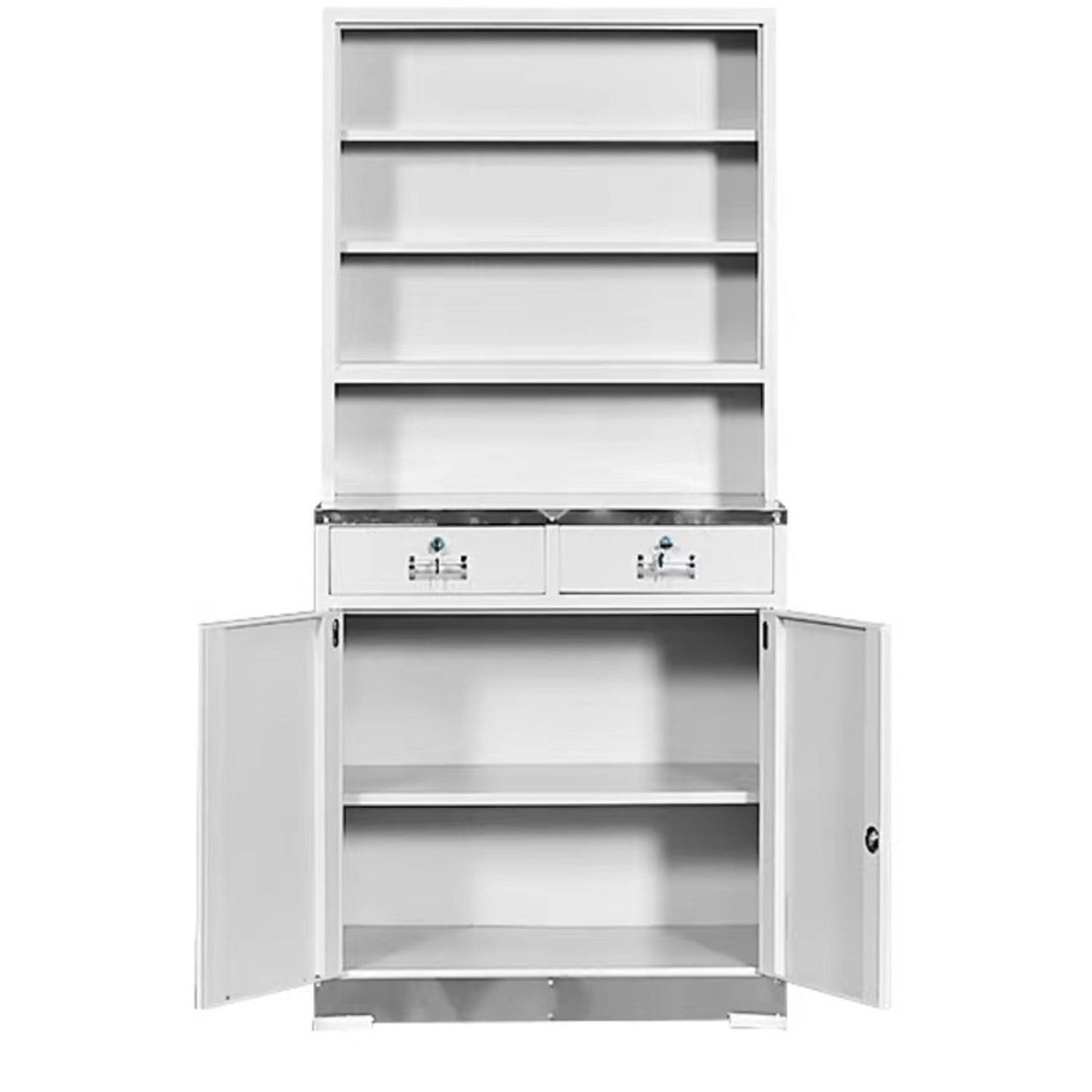 Commercial Stainless Steel Cabinet 3 Shelves 2 Drawers 4 Door 850x500x1850mm - CEMYSLC14